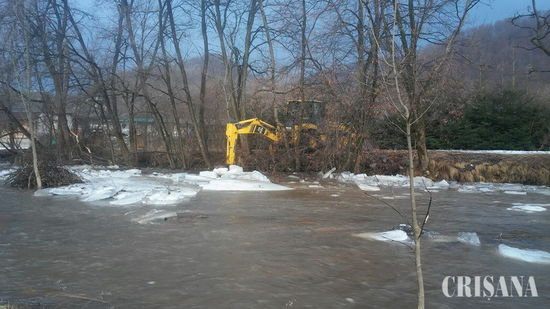 Precipitațiile lichide, precum și încălzirea vremii au dus la dislocarea podurilor de gheață de pe suprafața mai multor văi și râuri din bazinul hidrografic Crișuri. Având în vedere aceste fenomene, ABA Crișuri a mobilizat formațiile de lucru din teritoriu pentru a monitoriza cursurile de apă. Astfel, vineri, 3 februarie, au fost semnalate îngrămădiri de gheață pe valea Topa, în localitatea Hidișel, și pe valea Finiș, în localitatea Finiș. Cea mai dificilă intervenție a fost pe valea Finiș, unde s-a impus utilizarea unui buldoexcavator pentru a sparge blocurile de gheață întinse pe o suprafață de 250 m. De asemenea, în această localitate, preventiv, s-au amplasat saci de nisip în fața mai multor gospodării pentru a împiedica scurgerea apelor. Tot vineri, la ora 19.00, în dreptul podului din Ciucea, s-au semnalat scurgeri de sloiuri mari având o grosime de 25-30 cm. Angajații ABA Crișuri au intervenit cu utilaje, căngi și prăjine pentru a debloca scurgerea apei. Totodată, pe parcursul nopții s-a intervenit și în localitatea Negreni, unde aglomerările de ghețuri au blocat scurgerea apei la un podeț de pe valea Meportoc.