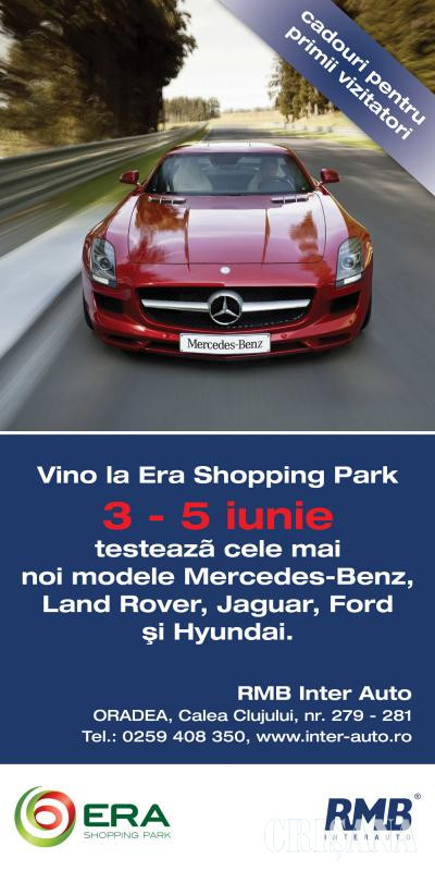 Astfel, sâmbătă, pe 4 iunie, Era Park va găzdui una dintre cele mai mari petreceri ale sezonului la care sunt invitaţi toţi copiii şi la care vor participa micuţii concurenţi de la Cupa Grădiniţelor. Piticii vor avea parte de spectacole de dans modern şi sportiv şi îşi vor putea demonstra talentul cu desene pe asfalt şi construcţii de puzzle. Bineînţeles, ei sunt aşteptaţi şi cu surprize, astfel că vor putea intra gratuit la Kangaroo Land, la piscina cu bile, precum şi la toboganele în aer liber. La finalul petrecerii, piticii se vor îndulci cu un tort imens, şampanie şi vor primi cadouri surpriză. Evenimentul se va desfăşura la Era Park, între orele 11.00-14.00. Pe de altă parte, pentru cei care plănuiesc să îşi cumpere o maşină sau sunt doar pasionaţi de vehiculele cu patru roţi, RMB aduce în parcarea de la Era cele mai noi modele de maşini. De vineri şi până duminică, orădenii vor putea afla totul despre maşinile lor preferate şi vor face în exclusivitate drive teste cu Jaguar XJ, Jaguar XK, Land Rover Discovery 4, Range Rover Sport, Ford Focus. Primii vizitatori ai expoziţiei vor fi aşteptaţi cu cadouri surpriză. Mai mult, pentru cei care iubesc adrenalina şi motoarele periculoase, la Era Park vor fi prezenţi cei mai buni instructuri de motociclism din Ungaria, care sunt pregătiţi să dea lecţii pentru orădeni. Lecţia de curaj va avea loc sâmbătă, 4 iunie, când 40 de motociclişti vor învăţa de la cei mai buni. Sesiunele de predare vor fi urmate de momente spectaculoase de demonstraţii de motociclism. Ziua va fi dedicată în totalitate motoarelor, evenimentul desfăşurându-se între orele 9.00 şi 17.00.