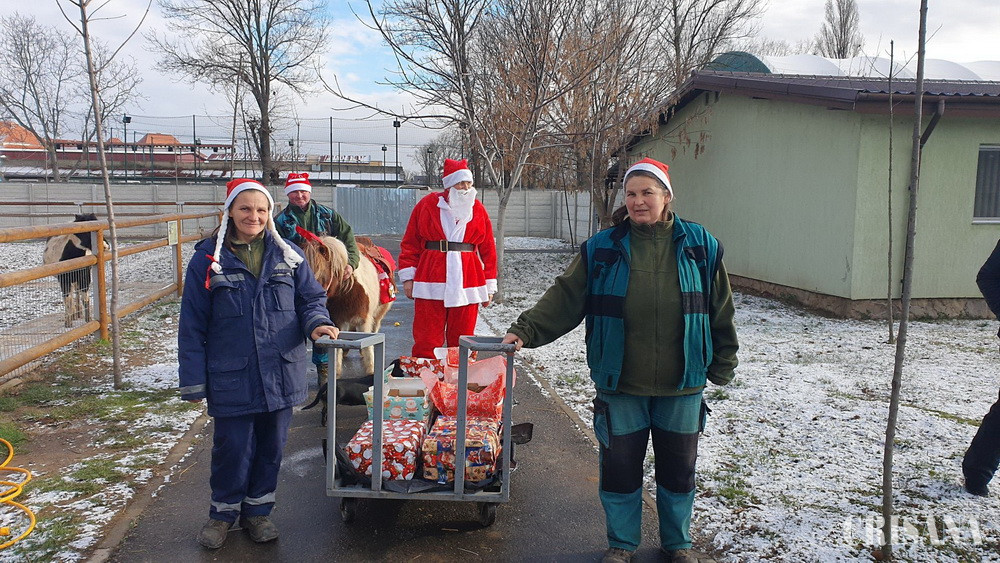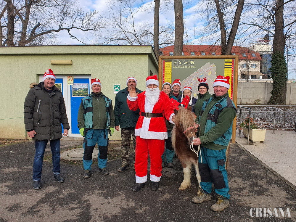 Spiridușii Moșului au intrat în acțiune la Grădina Zoologică din Oradea. Spre deosebire de alți ani, când Crăciunul animalelor se desfășura într-o singură zi, în acest an, evenimentul a durat aproape toată săptămâna premergătoare marii Sărbători. Angajații, coordonați de administratorul Florin Ienciu și medicul veterinar Alexandru Sârbu, le-au pregătit animalelor hrana în cutii de cadouri frumos colorate. Îngrijitorii au intrat apoi în rolul spiridușilor și, însoțiți de Moșul cel darnic, au vizitat animalele rând pe rând. Babuinii, suricatele, macacii japonezi, lemurii, dar și celelalte necuvântătoare s-au bucurat precum niște copii, înfruptându-se cu poftă din darurile primite: dulciuri, fructe, produse de patiserie și alte bunătăți. La fel de bucuroși de întâlnirea cu moșul și poneiul său au fost și copiii aflați în vizită la Zoo Oradea în aceste zile. Ei au fost încântați să vorbească cu îndrăgitul personaj, să primească micile daruri și chiar să se joace cu prietenosul ponei.
