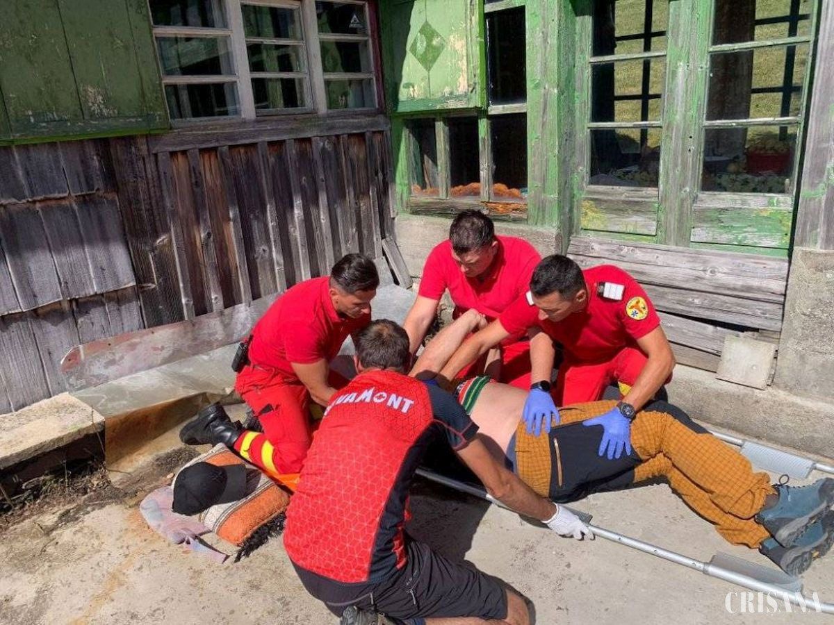 Bărbatul, în vârstă de 62 de ani, a căzut de la înălțime, într-o zonă greu accesibilă, la granița județelor Bihor și Alba.Victima este suspectată de traumatism toracic după cădere de la înălțime.