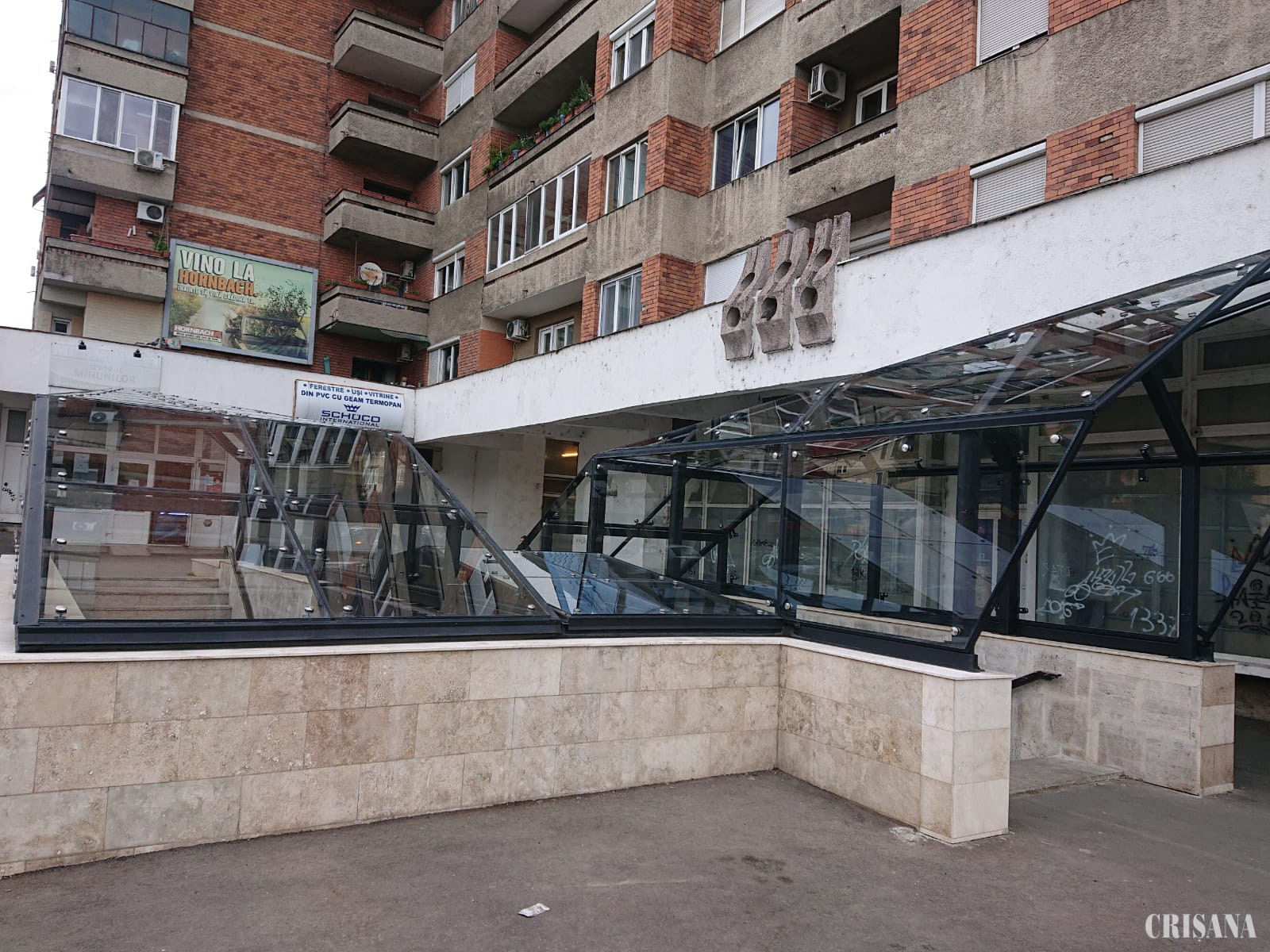 În cursul nopții de luni spre marți, au fost spălate și curățate suprafețele acoperite cu sticlă aferente copertinelor situate deasupra intrărilor în pasajul subteran situat pe B-dul General Gheorghe Magheru.