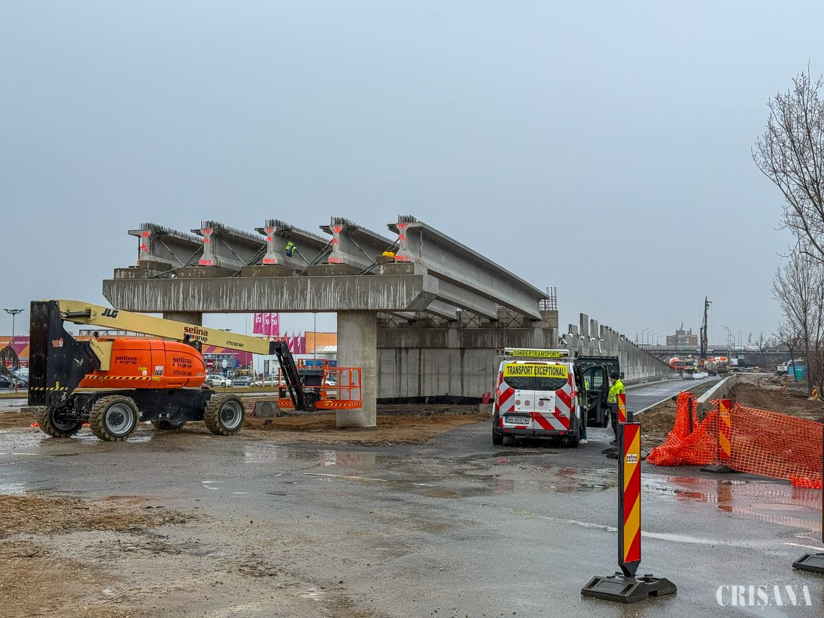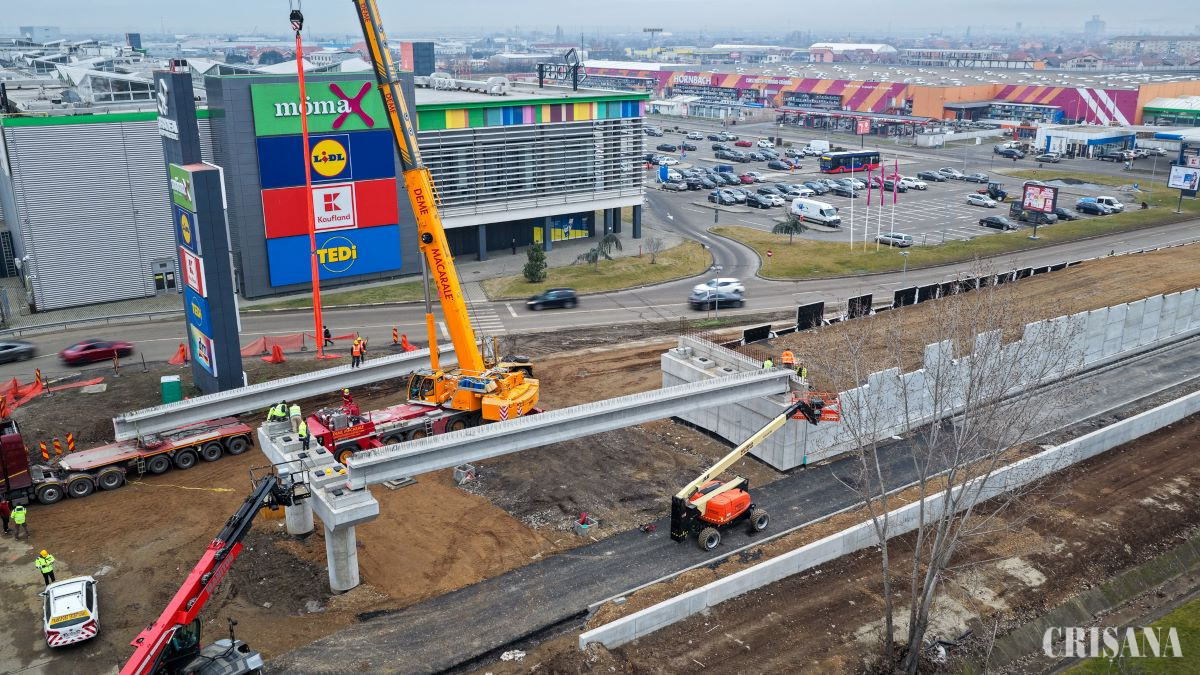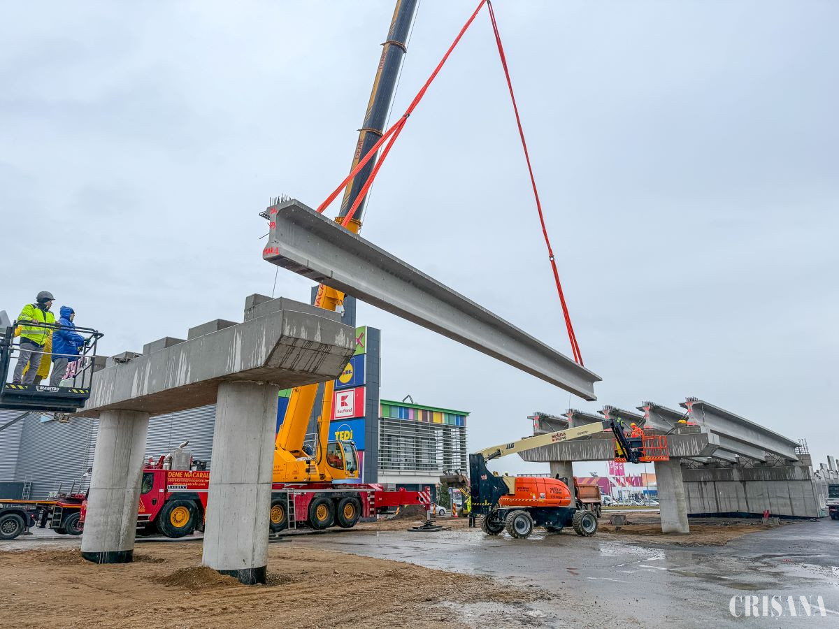 „În total, vor fi montate 25 de grinzi. În paralel, se lucrează la rampele de acces. Stadiul lucrărilor a ajuns la 65%”, menţionează CJ Bihor.