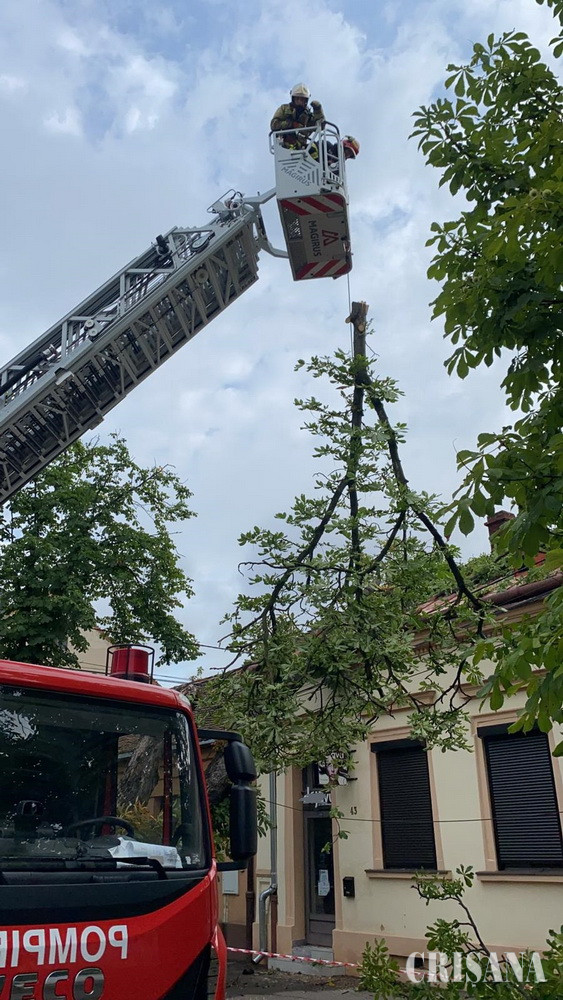 Între orele 20.30 -21.55, echipajele aceleiași subunități au acționat în municipiul Salonta, pentru înlăturarea unui copac doborât de vântul puternic pe acoperișul unei locuințe situate pe strada Liszt Ferenc, respectiv pentru îndepărtarea unui arbore prăbușit pe carosabil, pe strada Tincii.