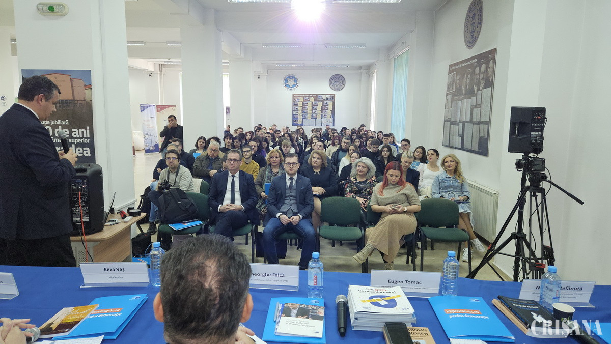 Dezbaterea despre rolul UE în combaterea dezinformării a început la ora 11.00 și i-a avut ca invitați pe europarlamentarii Gheorghe Falcă, Eugen Tomac, Alin Mituța (care a intervenit on-line) și Nicolae Ștefănuță, alături de Răzvan Szabo, de la Biroul Parlamentului European în Romania. Gazde au fost prorectorul Sorin Șipoș și scriitorul Florin Ardelean, iar moderatoare a fost Eliza Vaș, șefa Serviciului Studii Europene Institutul European din România, absolventă a Universității din Oradea. Dezbaterea a fost împărțită în două părți. Una în care europarlamentarii au vorbit despre dezinformare și despre ce face Uniunea Europeană pentru a o combate și a doua în care studenții au putut pune întrebări, respectând tematica.