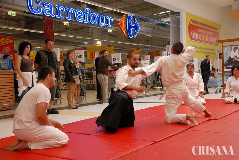 A doua ediţie a lecţiei de Aikido din Era Park Oradea s-a desfăşurat ieri şi a antrenat mai mulţi copii şi tineri, dornici să se specializeze în tehnici de autoapărare. Cursul a fost susţinut gratuit de Clubul "Dojo Maya Vital", iar instructorul Dragoş Rădulescu ne-a declarat că nu numai cei mici sunt atraşi de această disciplină sportivă, ci şi părinţii lor, care au promis că la următoarea ediţie vor răspunde, la rândul lor, acestei provocări.