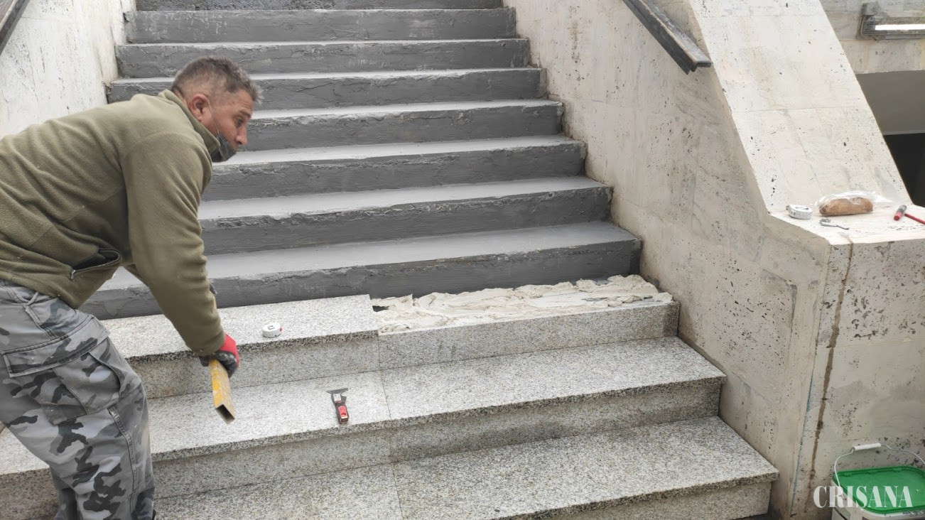 „Momentan, se lucrează la treptele dinspre Aleea Ștrandului. Lucrările constă în înlăturarea plăcilor de mozaic desprinse și deteriorate și remontarea unor plăci de granit și sunt executate de S.C. Drumuri Orășenești S.A., prin acordul cadru de întreținere - reparații străzi/poduri (pasaje) în municipiul Oradea”, precizează municipalitatea.