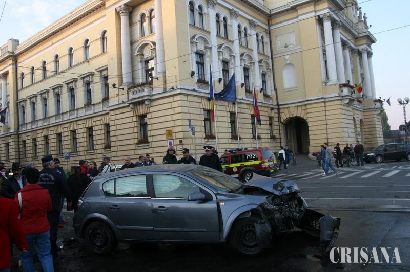 Oameni buni, nu e destul că suntem infiormaţi (nu minţiţi) că o ducem mai bine şi nivelul nostru de hrană şi de alte cele a crescut datorită scăderii inflaţiei = preţurilor... acum mai veniţi să ne faceţi şi imbecili, cretini, idioţi ??? Piaţa Ferdinand NU ESTE vecină cu strada Primîriei... Accidentul - conform cu fotografiile apărute - s-a produs în Piaţa Unirii. Amândouă pieţele sunt despărţite de un râu care are o placă (pentru neştiutorii de geografie), chiar şi în româneşte(!) pentru documentarea gazetarilor chemaţi şi plătiţi să deschidă ochii şi mintea celor care citesc presa tipărită în Oradea...