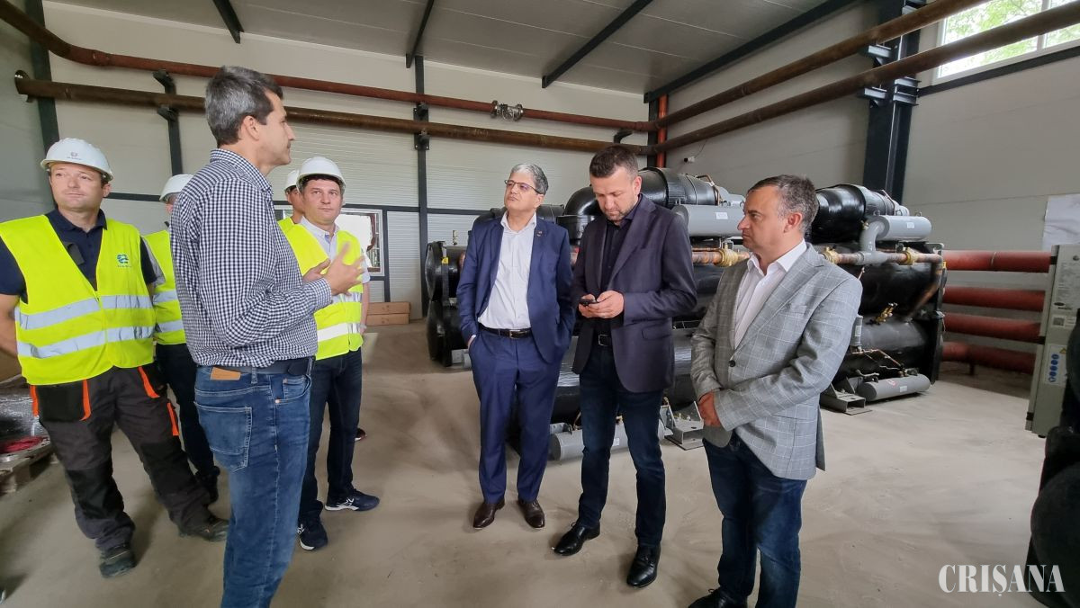 Prima oprire a ministrului a avut loc la Stația Termică Geotermală din str. Depozitului, în fapt o clădire nouă, realizată pe structură metalică, unde a fost montată o instalație de producere a agentului termic pe bază de apă geotermală, cu trei trepte în serie. Stația este doar unul dintre cele patru obiective prevăzute în cadrul investiției. Un altul, la fel de important, este forajul nou de producție din zona str. Meiului, care a fost pus în funcțiune la mijlocul lunii aprilie. Echipamentul care sapă continuu a ajuns deja la 2.000 de metri adâncime, însă ținta este 2.800 m.