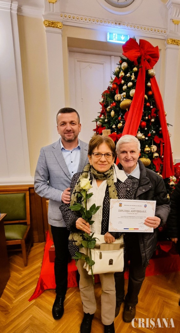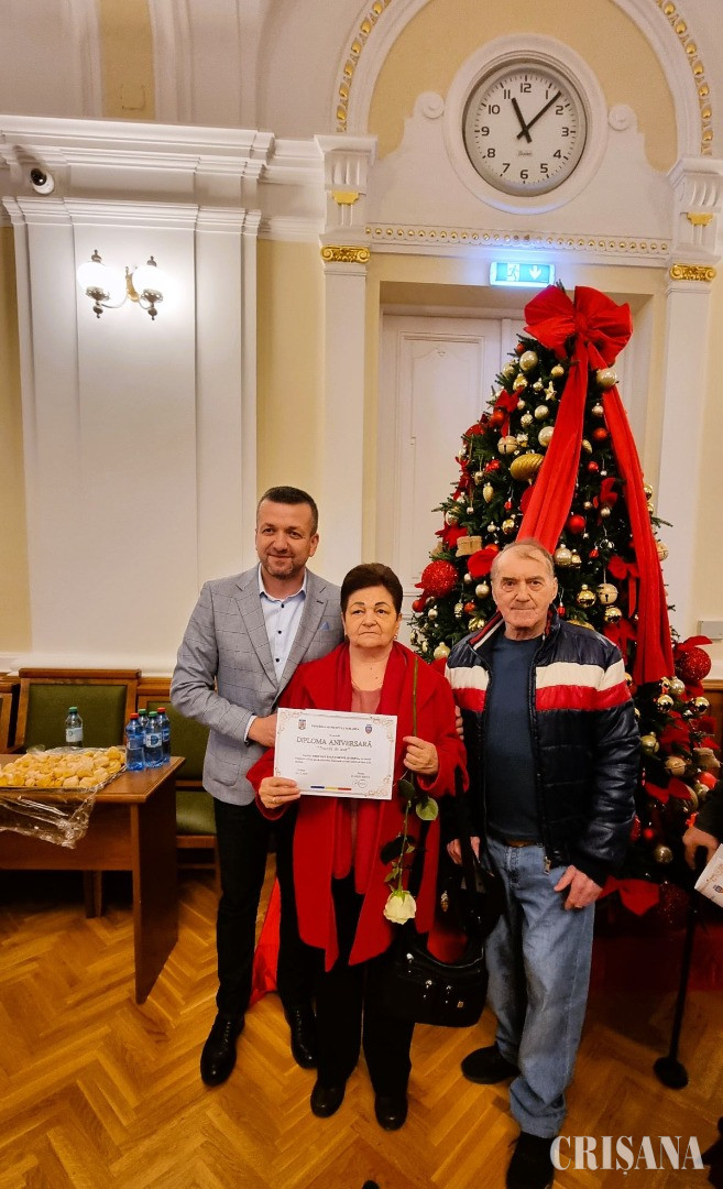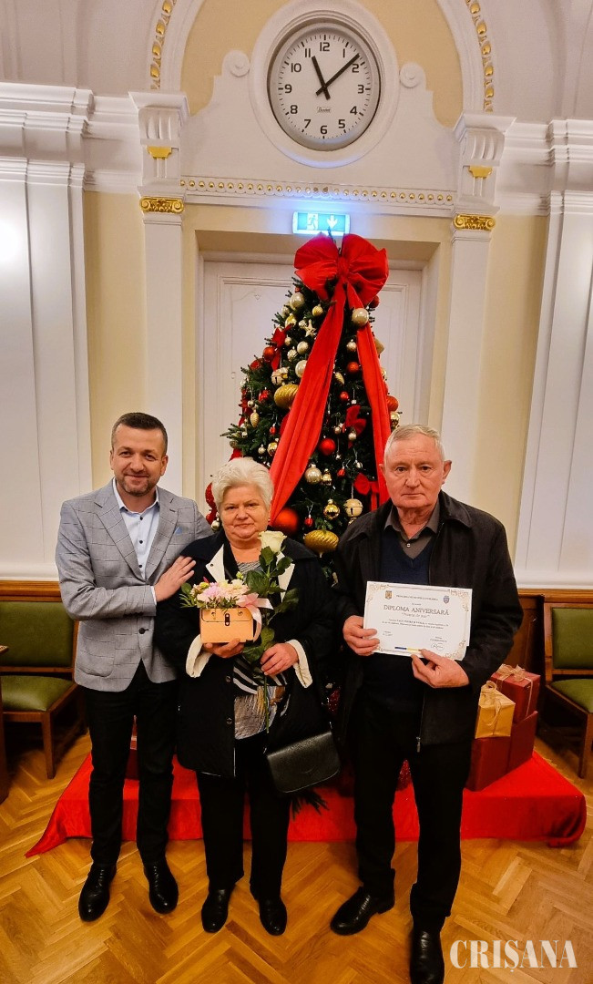 „Dragi sărbătoriți, onorate familii, ne aflăm astăzi aici pentru a marca un eveniment deosebit, un simbol al statorniciei: Nunta de Aur. 50 de ani de căsnicie nu sunt doar o realizare extraordinară, ci și o dovadă vie a devotamentului, a respectului reciproc și a unei povești de viață clădite cu răbdare, înțelepciune și sacrificii. Sunteți un exemplu pentru noi toți – pentru generațiile tinere care au nevoie să înțeleagă că adevărata fericire vine din construirea unei vieți împreună, din momentele împărtășite, din bucuriile, dar și din provocările depășite cu răbdare și iubire. Vă mulțumesc tuturor și vă felicit din inimă pentru această realizare extraordinară!”, le-a transmis viceprimarul Teofil Filimon.