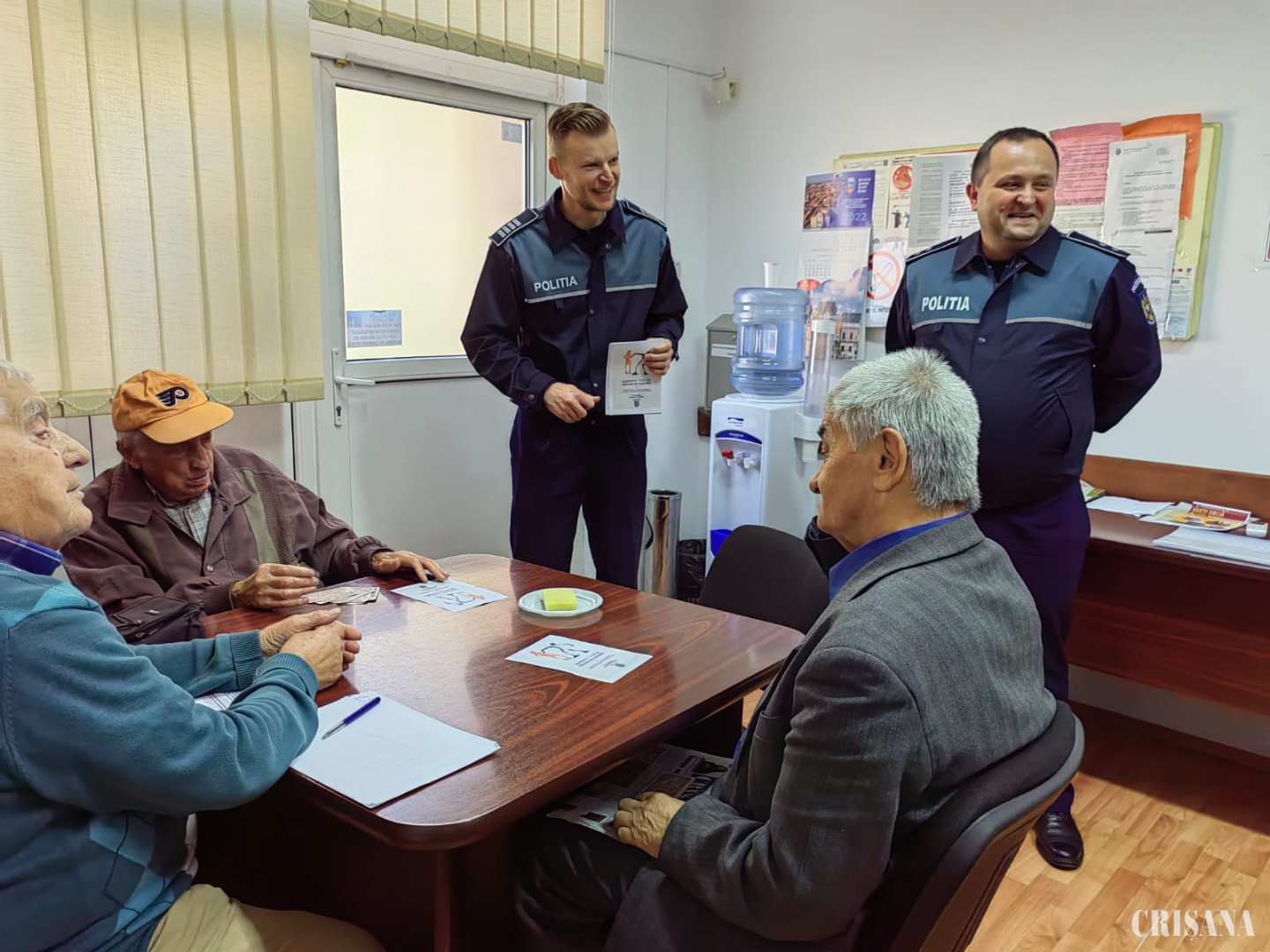Vineri, 7 octombrie, doi reprezentanți ai IPJ Bihor - Compartimentul de Analiză și Prevenire a Criminalității, comisar Bogdan Axinte și agent șef Răzvan Chebeleu, s-au întâlnit cu seniorii care frecventează centrele sociale multifuncționale. Evenimentul a făcut parte din seria de activități preventive menite să combată situațiile de victimizare a persoanelor vârstnice.