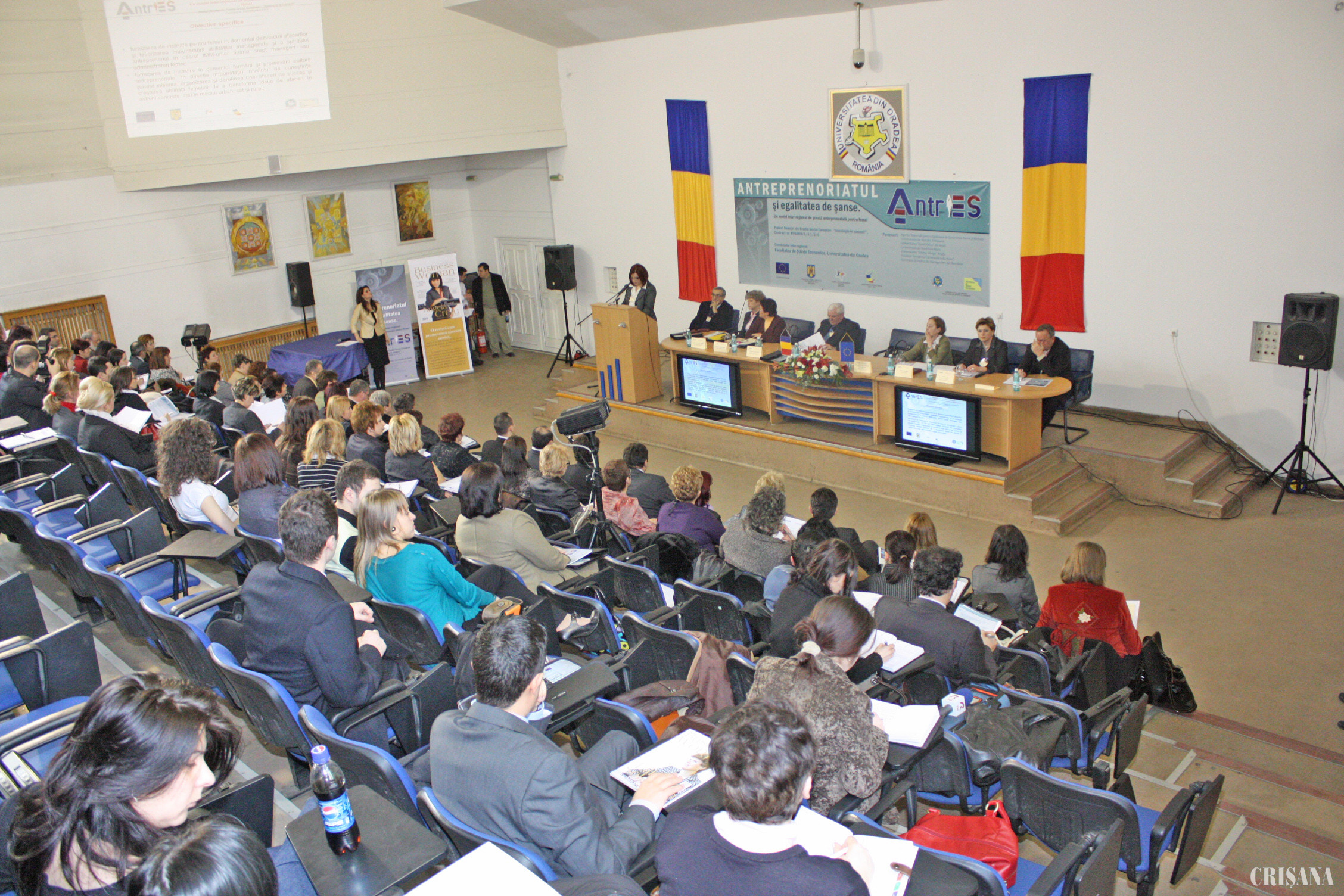 În Aula Magna a Universităţii din Oradea, a fost lansat, ieri, proiectul "Antreprenoriatul şi egalitatea de şanse. Un model interregional de şcoală antreprenorială pentru femei". Evenimentul a fost organizat de Facultatea de Ştiinţe Economice, în parteneriat cu Agenţia Naţională pentru Egalitatea de Şanse între Femei şi Bărbaţi, Universitatea de Vest din Timişoara, Universitatea "Aurel Vlaicu" din Arad, Universitatea de Nord din Baia Mare, Universitatea "Eftimie Murgu" din Reşiţa, Fundaţia "Academia Comercială Satu Mare" şi Societatea de Ştiinţe de Management din România.