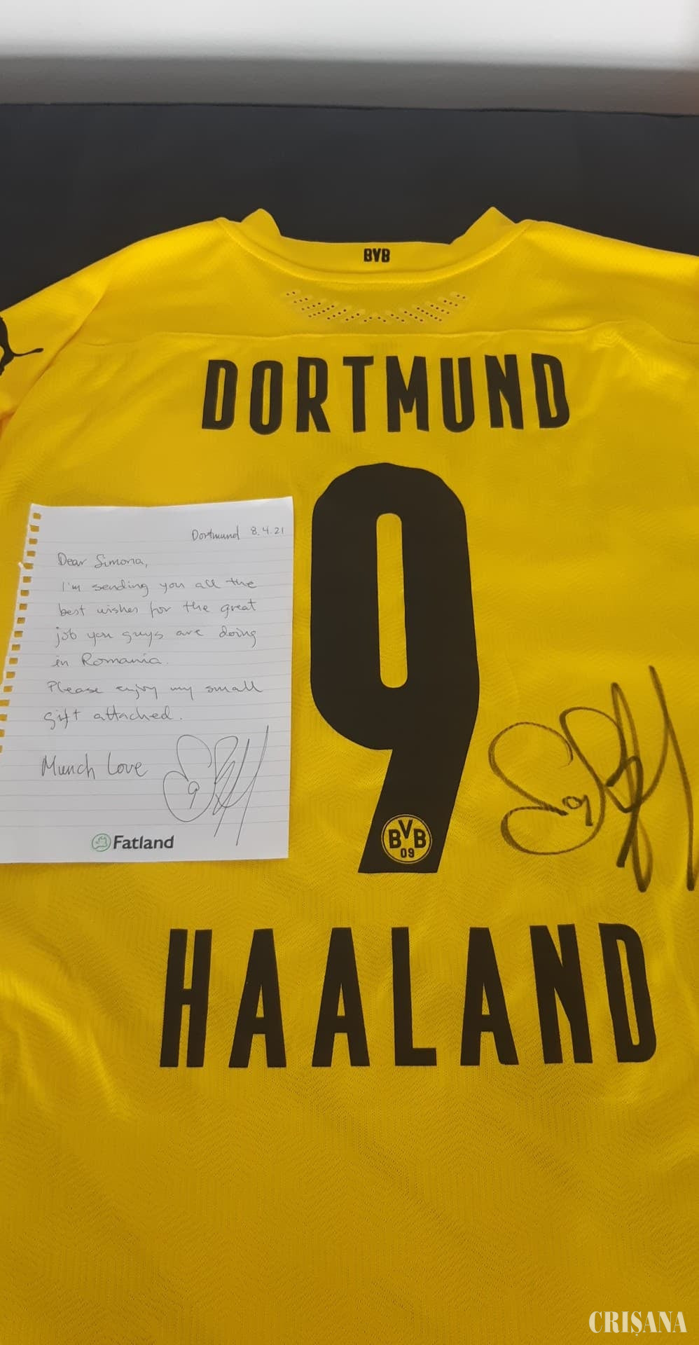 „Un colet surpriză a ajuns azi la sediul nostru! Coletul este din partea renumitului fotbalist al echipei Borussia Dortmund, Erling Haaland și conține tricoul personal al marelui fotbalist cu semnătura lui, poze cu autograful său și o scrisoare adresată președintei Simona Zlibuț. Cuvintele de mulțumire sunt modeste pentru recunoștința ce o avem față de gestul nobil al acestui sportiv. Vă mulțumim!”, a scris ieri pe pagina de Facebook a Asociației SOS Autism Bihor.