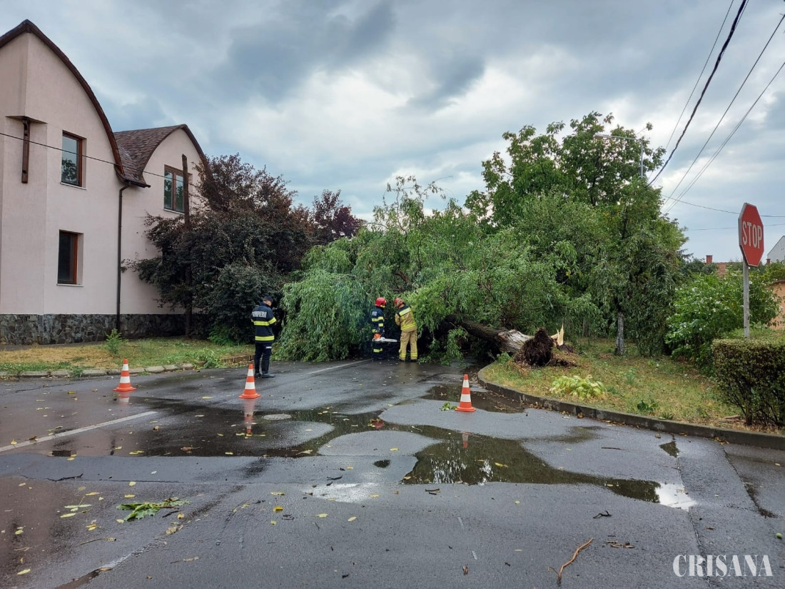 În urma vântului puternic manifestat în Bihor, s-au înregistrat până la această oră, efecte în trei localităţi, respectiv Oradea, Salonta şi Băile Felix, unde pompierii militari din cadrul Detaşamentelor 1 şi 2 Oradea şi Detaşamentulul Salonta intervin pentru degajarea mai multor copaci căzuţi pe carosabil, respectiv peste patru autoturisme. Din fericire, chiar dacă în două din cele patru maşini peste care s-au prăbuşit arbori, se aflau persoane, acestea nu au fost rănite. Potrivit mr. Camelia Roşca, purtătorul de cuvânt al ISU Bihor, pompierii militari intervin pentru degajarea a doi copaci doborâţi de vântul puternic pe autoturisme în Oradea, Bulevardul Dimitrie Cantemir şi în Salonta, respective pentru degajarea unui copac căzut pe strada Bistriţei din Oradea. Tototdată, pompierii au fost solicitaţi pe strada Şirul Canonicilor şi Dimitrie Cantemir, dar şi pe străzile Piaţa Bucureşti, Făcliei şi Doinei, tot pentru îndepărtarea copacilor căzuţi pe carosabil.
