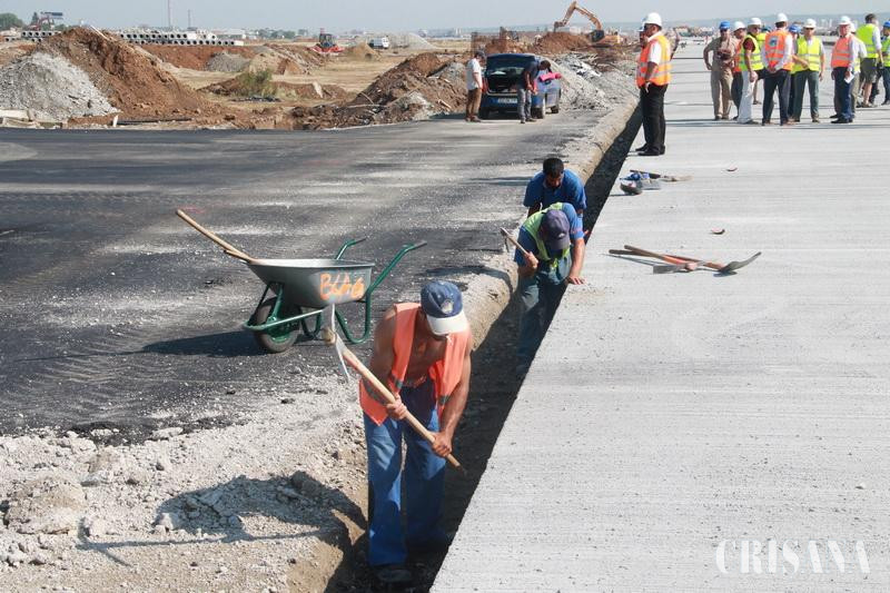 Timp de 59 de zile, activitatea pe Aeroportul Oradea a fost complet suspendată, la solicitarea constructorului, care a cerut front de lucru pentru realizarea pistei. Cele 59 de zile au expirat ieri, dacă antreprenorul depăşea acest termen trebuind să plătească 50.000 de euro/zi. Conform graficului de lucrări, ieri, constructorul a finalizat pe o lungime de 1.300 de m, din cei 2.100 de m, pista de decolare/aterizare, cu asigurarea prelungirilor de oprire de 150 m de-o parte şi de cealaltă a acestei lungimi.