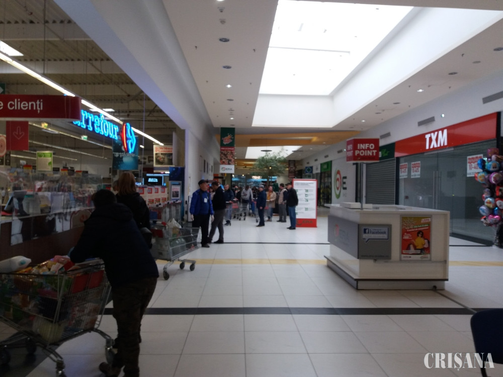 În ultima zi înainte de aplicarea noilor măsuri restrictive privind circulaţia populaţiei, orădenii au dat buzna la supermarketuri pentru a mai îndesa câteva lucruri în cămară. La toate centrele comerciale din oraş s-au format cozi.