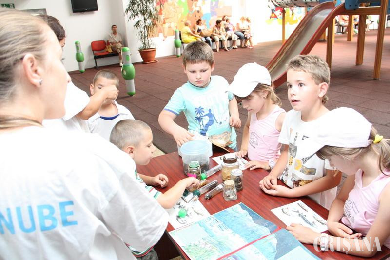 Proiectul iniţiat de ABA Crişuri, "Lumea fascinantă a Dunării", s-a desfăşurat, ieri, în Orăşelul Copiilor. Angajaţii ABA Crişuri i-au aşteptat pe cei mici cu poveşti, enciclopedii cu peşti, jocuri, precum şi un minilaborator de biologie. Au fost pregătite, în funcţie de categoriile de vârste, mai multe zone pentru activităţi. La "Centrul de Poveşti" s-au reunit copiii cu vârste între 2 şi 6 ani. Aici, cei mici au primit fişe de lucru, au colorat şi au învăţat despre cele trei probleme ale apei: poluare, secetă şi inundaţii. De asemenea, voluntarii i-au antrenat pe copii în diferite jocuri interactive şi au lecturat "Peripeţiile lui Stropi în ţările Dunării". În cadrul "Centrului de Biologie" vizitatorilor le-au fost prezentaţi peştii şi vieţuitoarele din Bazinul Dunării. "Am învăţat că trebuie să oprim apa când ne spălăm pe dinţi. Trebuie să avem grijă de apă pentru ca şi peştişorii să trăiască în râuri", ne-a declarat Mara, o fetiţă în vârstă de trei ani şi zece luni. "Anul acesta este al nouălea an consecutiv când milioane de copii din Germania, Austria, Slovacia, Ungaria, Croaţia, Serbia, România, Bulgaria, Republica Moldova şi Ucraina sărbătoresc ziua celui mai fascinant fluviu din Europa. Şi noi, la galeria cu acvarii am organizat două centre dedicate copiilor şi părinţilor, aducând în prim plan fascinanta lume a apelor din bazinul Dunării", ne-a declarat Anca Mihociu, reprezentant ABA Crişuri.