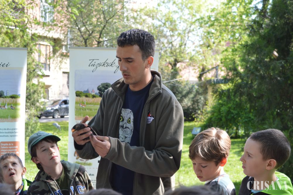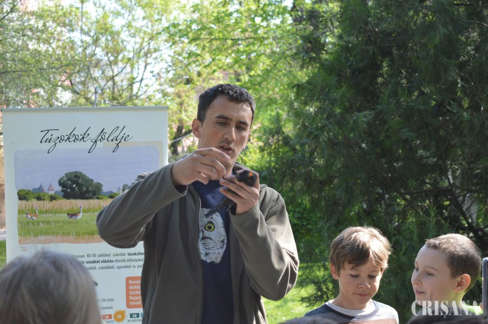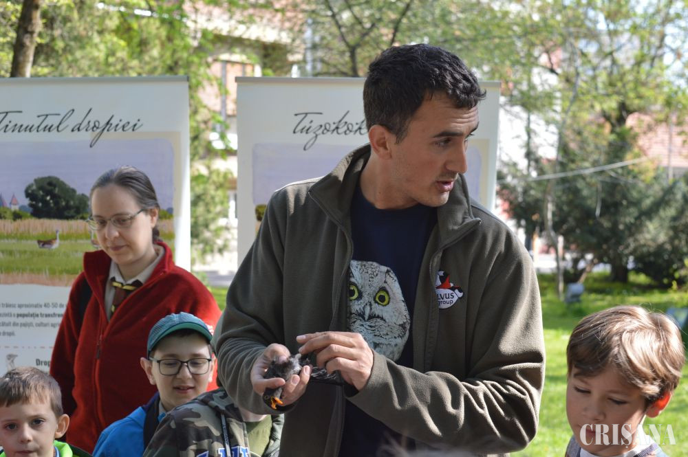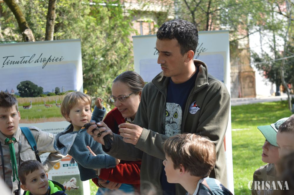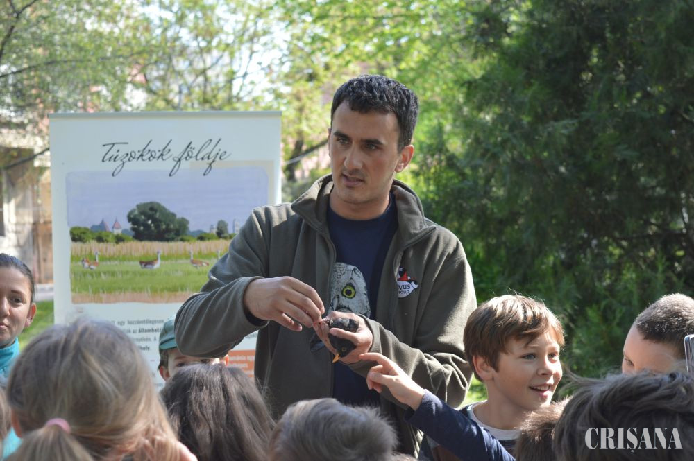 „Activitatea a constat în inelarea demonstrativă a unor păsări. Le-am prezentat în ce constă capturarea și montarea de inele pe păsări sălbatice. Montăm aceste inele pentru a urmări rutele de migrație, dar și pentru alte studii, cum este studierea vârstei păsărilor. Există tabere de inelare unde sunt inelate mii de păsări în fiecare sezon și sunt multe recapturi, adică păsări care au mai fost inelate fie în România fie în alte țări. Rutele migratoare se modifică din cauza vremii. În ultimii ani nu prea mai sunt ierni aspre cum era înainte iar unele specii, din categoria celor parțial migratoare sau migratoare pe termen scurt, nu mai migrează, rămân la noi. Altele își schimbă rutele de migrație. De exemplu, gâsca cu gât roșu avea cartierele de iernare, acum câțiva ani, în zona Dobrogea. Acum s-a mutat mai spre vest și începe să-și mute cartierul de iernare spre Ungaria. Este important să cunoaștem toate aceste lucruri pentru a le putea proteja și pentru a menține biodiversitatea la un nivel cât mai înalt, iar păsările sunt un bun indicator în acest sens. Biodiversitatea este importantă pentru că ne ajută să trăim într-un habitat cât mai natural și mai sănătos”, a declarat, pentru CRIŞANA, biologul Lőrinc Bărbos de la Asociația „Grupul Milvus” care a mai adăugat: „noi ne ocupăm de păsări, tot ce ține de protecția, studierea păsărilor, în special de cele răpitoare, dar avem colegi care sunt experți în mamifere sau amfibieni și reptile etc. Scopul este conservarea naturii. Sunt activități pe care le facem pe bază de voluntariat și altele finanțate din fonduri europene. Am avut multe proiecte legate de conservare în Câmpia de Vest, spre exemplu la dropie, la dumbrăveancă, la șoimul dunărean, vânturelul de seară etc”.