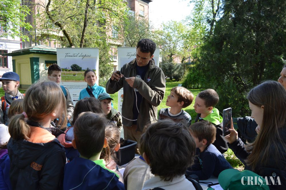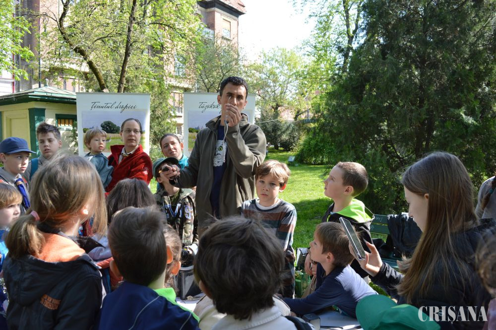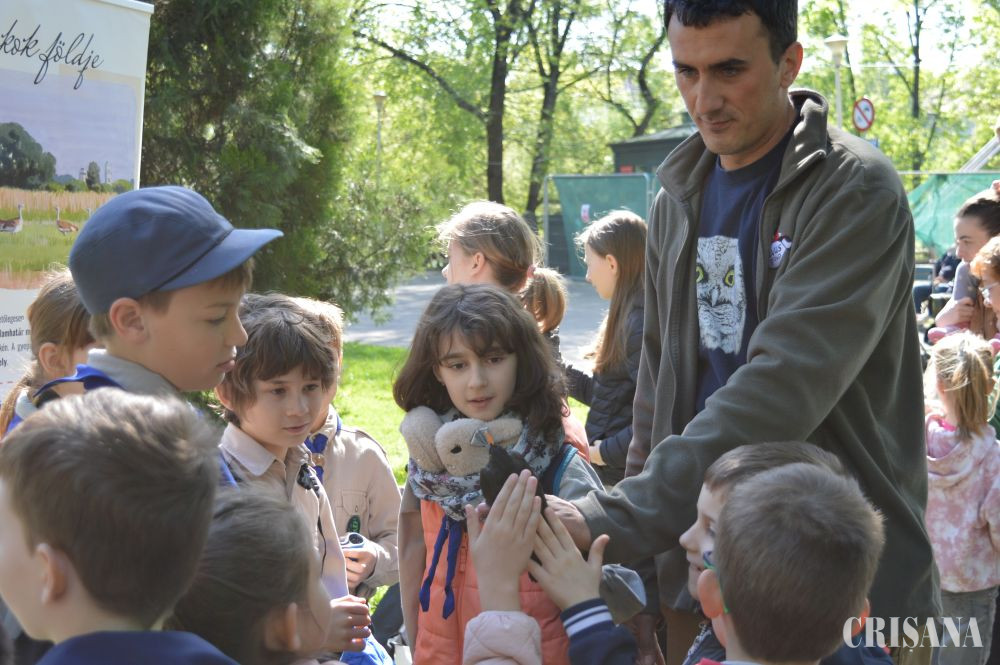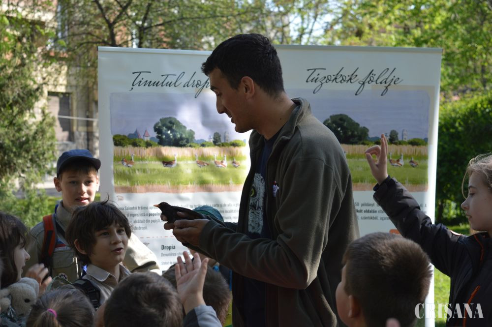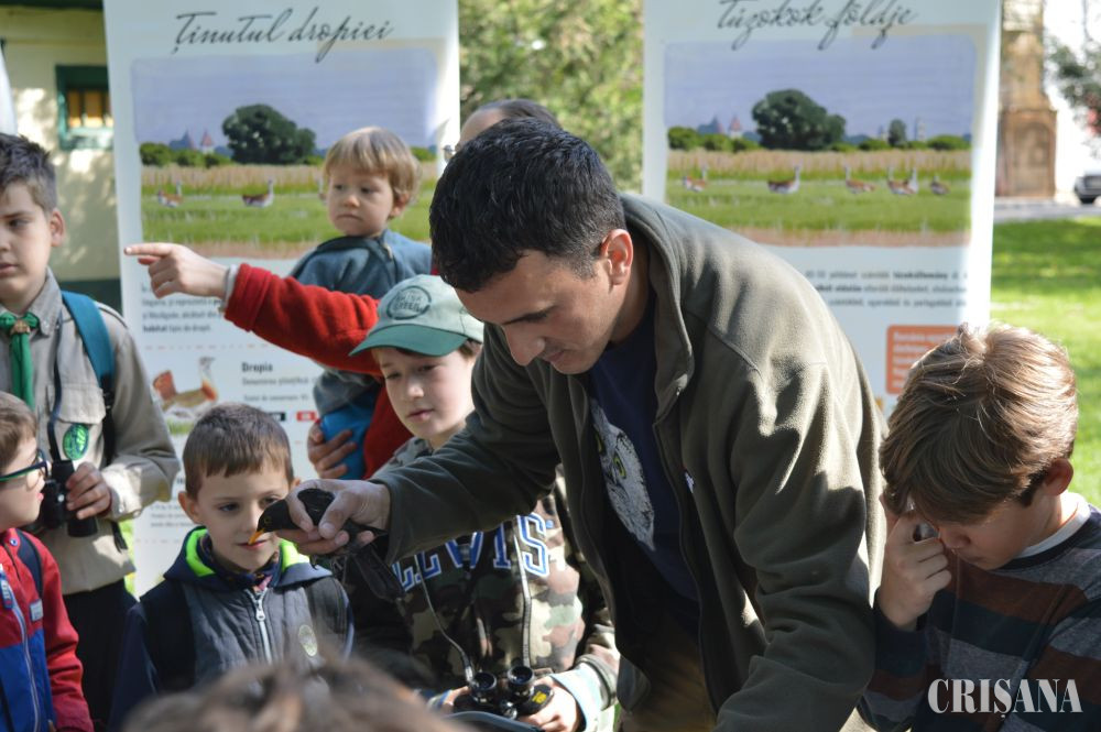 „Activitatea a constat în inelarea demonstrativă a unor păsări. Le-am prezentat în ce constă capturarea și montarea de inele pe păsări sălbatice. Montăm aceste inele pentru a urmări rutele de migrație, dar și pentru alte studii, cum este studierea vârstei păsărilor. Există tabere de inelare unde sunt inelate mii de păsări în fiecare sezon și sunt multe recapturi, adică păsări care au mai fost inelate fie în România fie în alte țări. Rutele migratoare se modifică din cauza vremii. În ultimii ani nu prea mai sunt ierni aspre cum era înainte iar unele specii, din categoria celor parțial migratoare sau migratoare pe termen scurt, nu mai migrează, rămân la noi. Altele își schimbă rutele de migrație. De exemplu, gâsca cu gât roșu avea cartierele de iernare, acum câțiva ani, în zona Dobrogea. Acum s-a mutat mai spre vest și începe să-și mute cartierul de iernare spre Ungaria. Este important să cunoaștem toate aceste lucruri pentru a le putea proteja și pentru a menține biodiversitatea la un nivel cât mai înalt, iar păsările sunt un bun indicator în acest sens. Biodiversitatea este importantă pentru că ne ajută să trăim într-un habitat cât mai natural și mai sănătos”, a declarat, pentru CRIŞANA, biologul Lőrinc Bărbos de la Asociația „Grupul Milvus” care a mai adăugat: „noi ne ocupăm de păsări, tot ce ține de protecția, studierea păsărilor, în special de cele răpitoare, dar avem colegi care sunt experți în mamifere sau amfibieni și reptile etc. Scopul este conservarea naturii. Sunt activități pe care le facem pe bază de voluntariat și altele finanțate din fonduri europene. Am avut multe proiecte legate de conservare în Câmpia de Vest, spre exemplu la dropie, la dumbrăveancă, la șoimul dunărean, vânturelul de seară etc”.