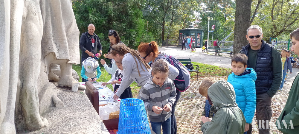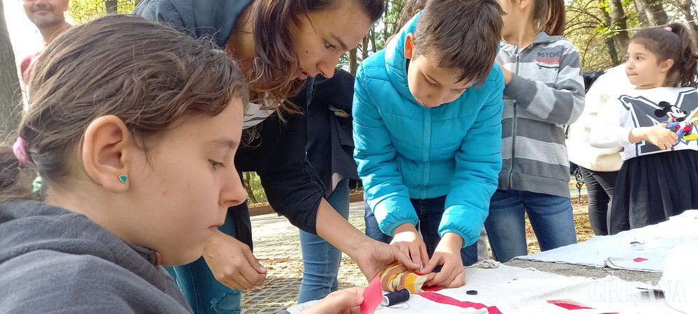 Bucurie mare pentru copii, sâmbătă, 24 septembrie, în Parcul Libertății. Pe o vreme frumoasă, cu soare generos, în jurul statuii lui Szacsvay Imre, micuții au învățat, de la instructorii Asociației Grund Community, să facă șosete vorbitoare.