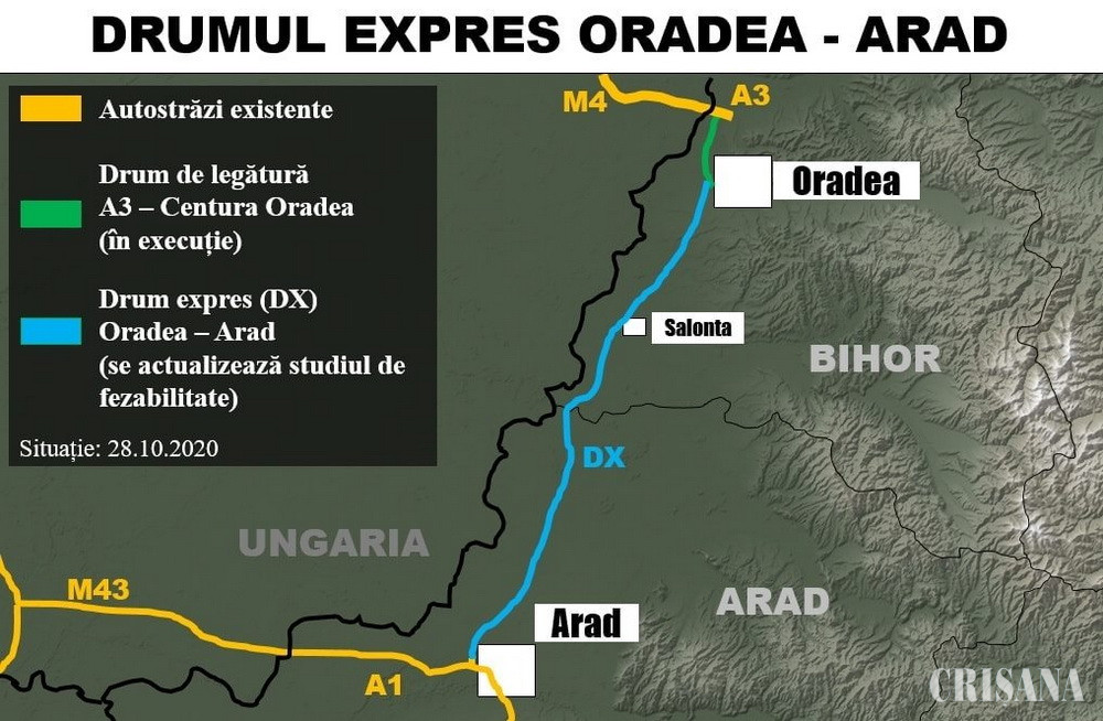 În şedinţa CJ Bihor de joi a fost aprobată încheierea unui parteneriat între Consiliul Județean Bihor, Primăria Oradea, Primăria Arad, Consiliul Județean Arad și Compania Națională de Administrare a Infrastructurii Rutiere, necesar pentru actualizarea studiului de fezabilitate al viitorului drum expres Oradea-Arad. În acest fel, menţionează CJ Bihor, se evită riscul de dezangajare a fondurilor europene din perioada de programare 2014 – 2020. Parteneriatul se realizează în temeiul Ordonanței de Urgență nr 101/2020, care permite autorităților locale să realizeze parteneriate cu CNAIR „pentru implementarea de proiecte de infrastructură de transport rutier de natura variantelor ocolitoare, drumurilor de legătură la drumurile naționale, autostrăzilor, drumurilor expres, drumurilor alternative ca soluții pentru descongestionarea de trafic rutier, inclusiv modernizarea, reabilitarea acestora”.
