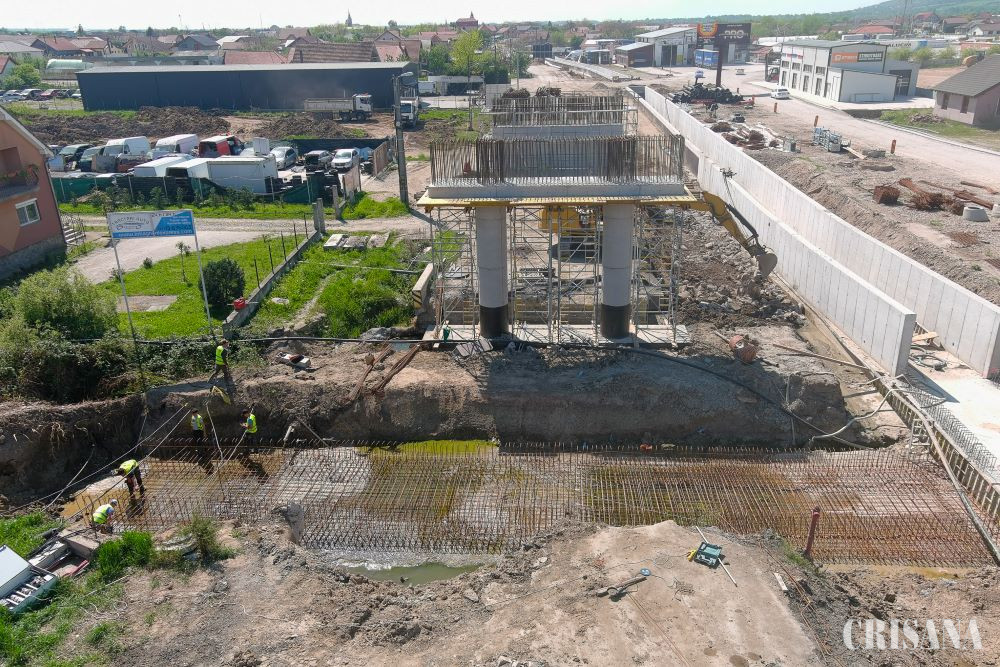 Au fost turnați toți cei 24 de piloți, parte a fundației pasajului, care include două culei (elemente solide din beton ce acționează ca bază de sprijin) și patru pile intermediare (coloane de beton care ajută la distribuirea uniformă a greutății). În prezent se lucrează la un canal colector și la partea de suprastructură.