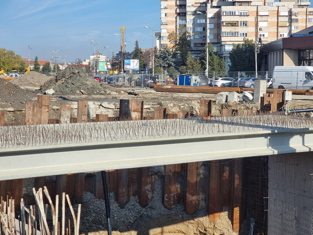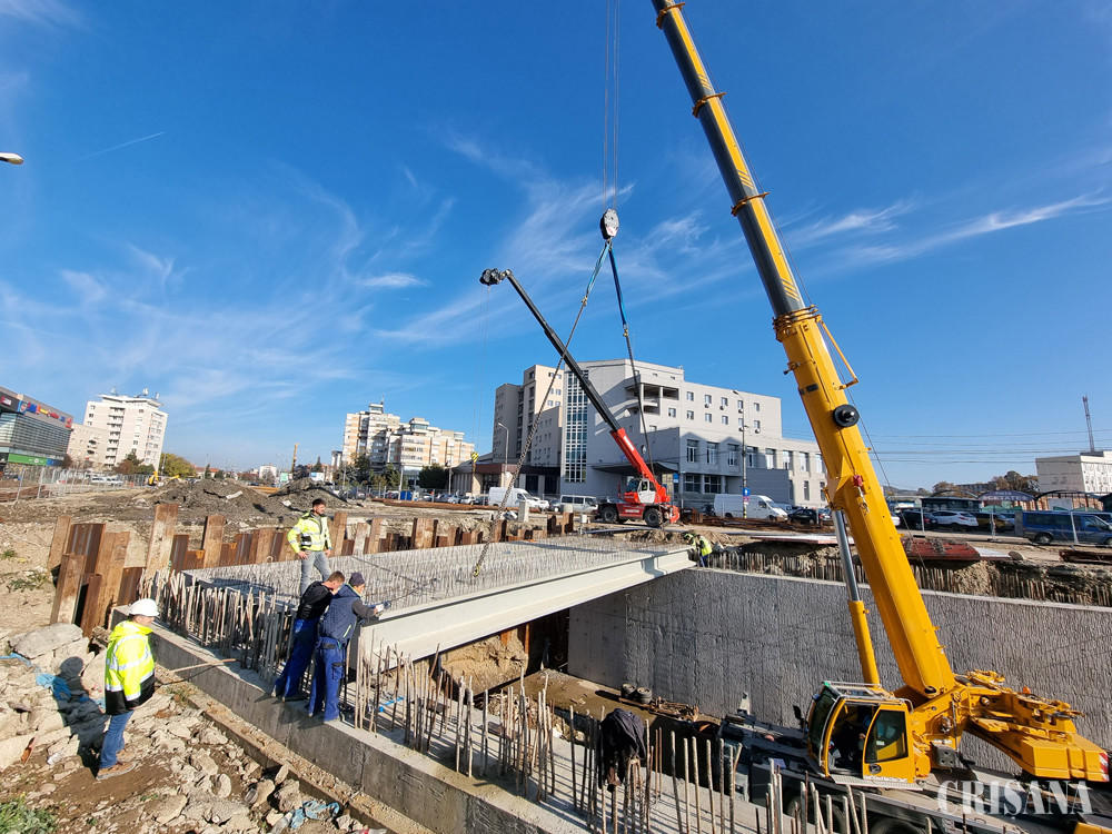 Cele 16 grinzi vor fi montate în această săptămână, iar restul în cursul săptămânii viitoare. Totodată, a început săparea rampei dinspre zona centrală, urmând să fie montate palplanșele.