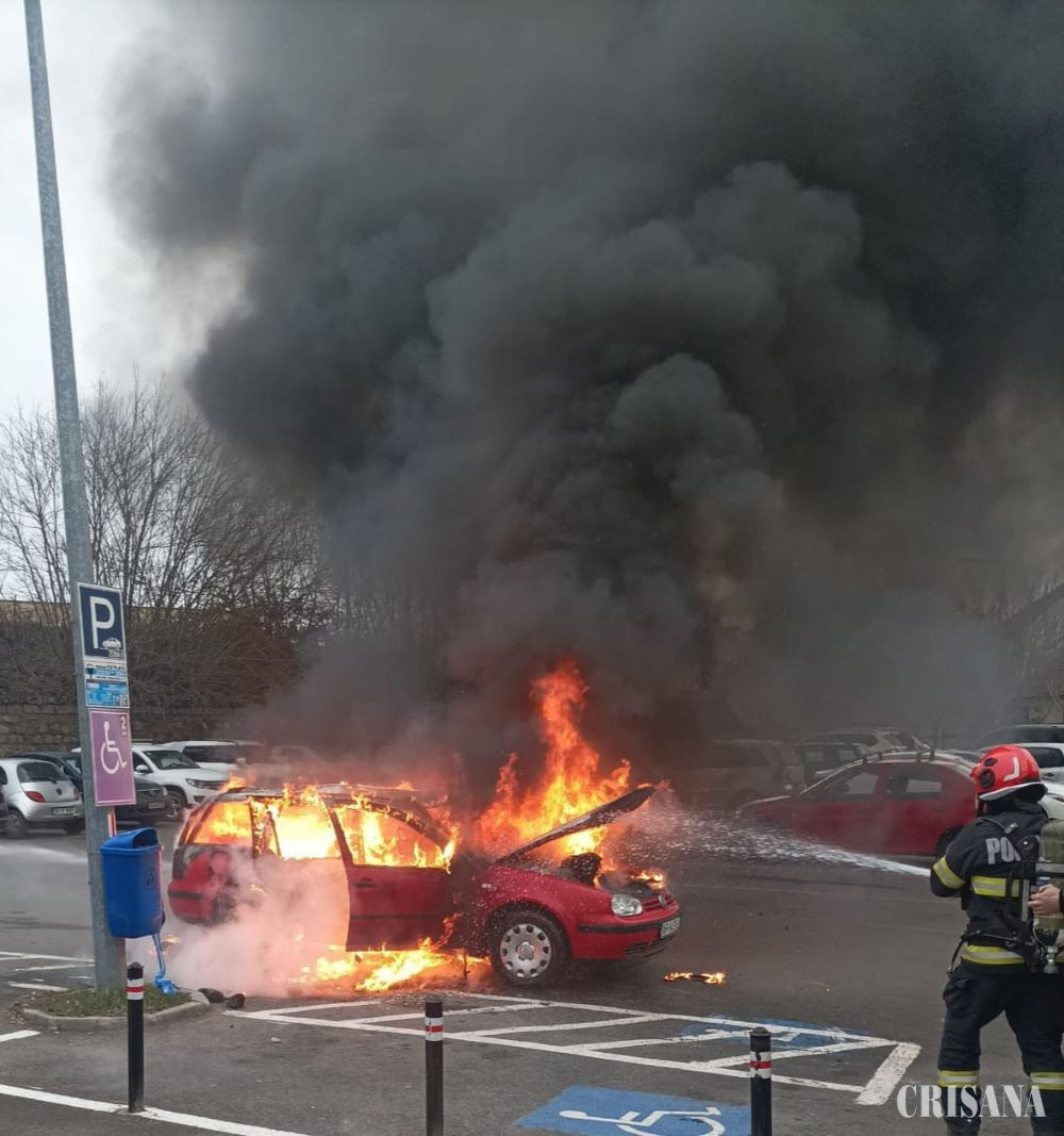 Potrivit lt. Col. Camelia Roșca, purtătorul de cuvânt al ISU Bihor, apelul care sesiza producerea unui incendiu în parcarea unității sanitare, de pe strada Louis Pasteur, a fost primit, prin 112, la ora 16.20. La fața locului au fost mobilizați pompierii Detașamentului 2 Oradea, cu o autospecială de stingere. Flăcările, care se manifestau generalizat la întregul autoturism, au fost stinse în mai puțin de cinci minute. Cauza probabilă a incendiului a fost stabilită că fiind de natură electrică. Nimeni nu a fost rănit.