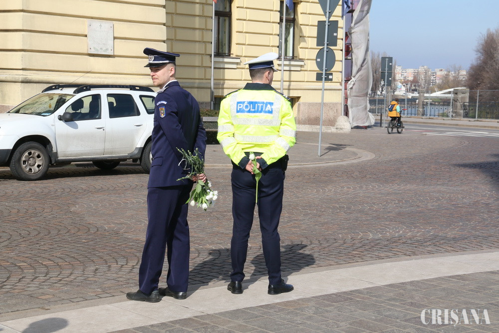 Continuând tradiţia anilor precedenţi, duminică, 8 martie, începând cu ora 11.30, poliţiştii Compartimentului de Prevenire a Criminalităţii împreună cu polițiștii Biroului Drumuri Naționale și Europene – Serviciul Rutier și polițiștii Biroului Rutier – Poliția Municipiului Oradea din cadrul Inspectoratului de Poliţie Judeţean Bihor, alături de reprezentanții Asociației pentru Educație și Siguranță Rutieră, au acţionat pe raza Municipiului Oradea și pe toate drumurile naționale din județ, oferind flori doamnelor şi domnişoarelor, marcând astfel, simbolic, Ziua Internaţională a Femeii.