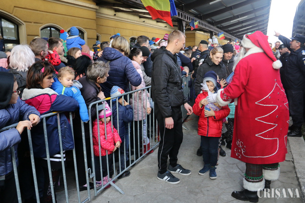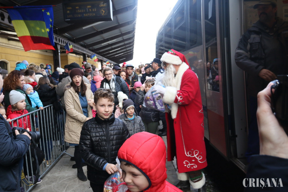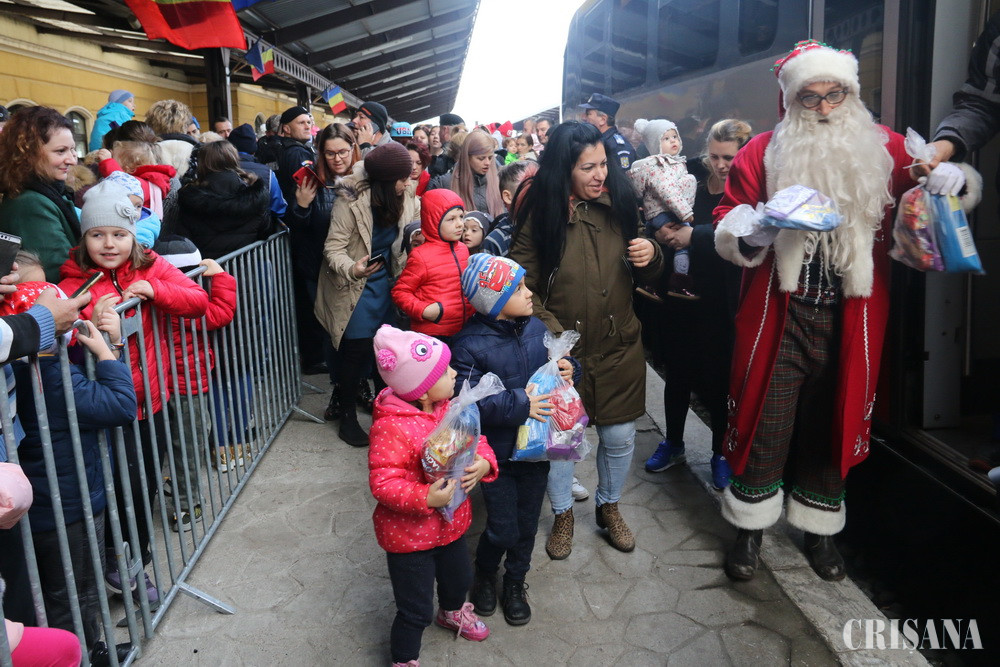 Moş Crăciun a sosit în Oradea sâmbătă, 21 decembrie, cu trenul magic care l-a adus tocmai de la Polul Nord. Sute de copii, alături de părinţi şi bunici l-au aşteptat pe peronul gării şi au fost răsplătiţi pentru răbdare şi entuziasm cu pacheţele de dulciuri.