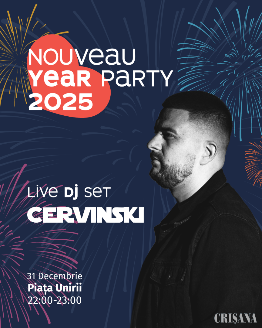 „Vă invităm să întâmpinăm noul an la Nouveau Year Party 2026, petrecerea de Revelion ce va avea loc în inima orașului, în Piața Unirii, pe 31 decembrie. Petrecerea începe la ora 22.00, când Cervinski va da startul serii. Atmosfera va fi apoi preluată de AlbWho, care va menține ritmul până la ora 1.00”, anunță reprezentanții Visit Oradea.