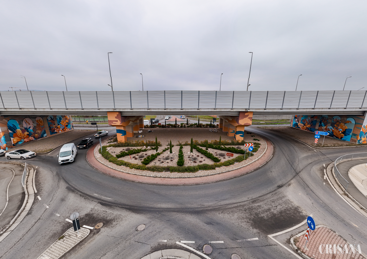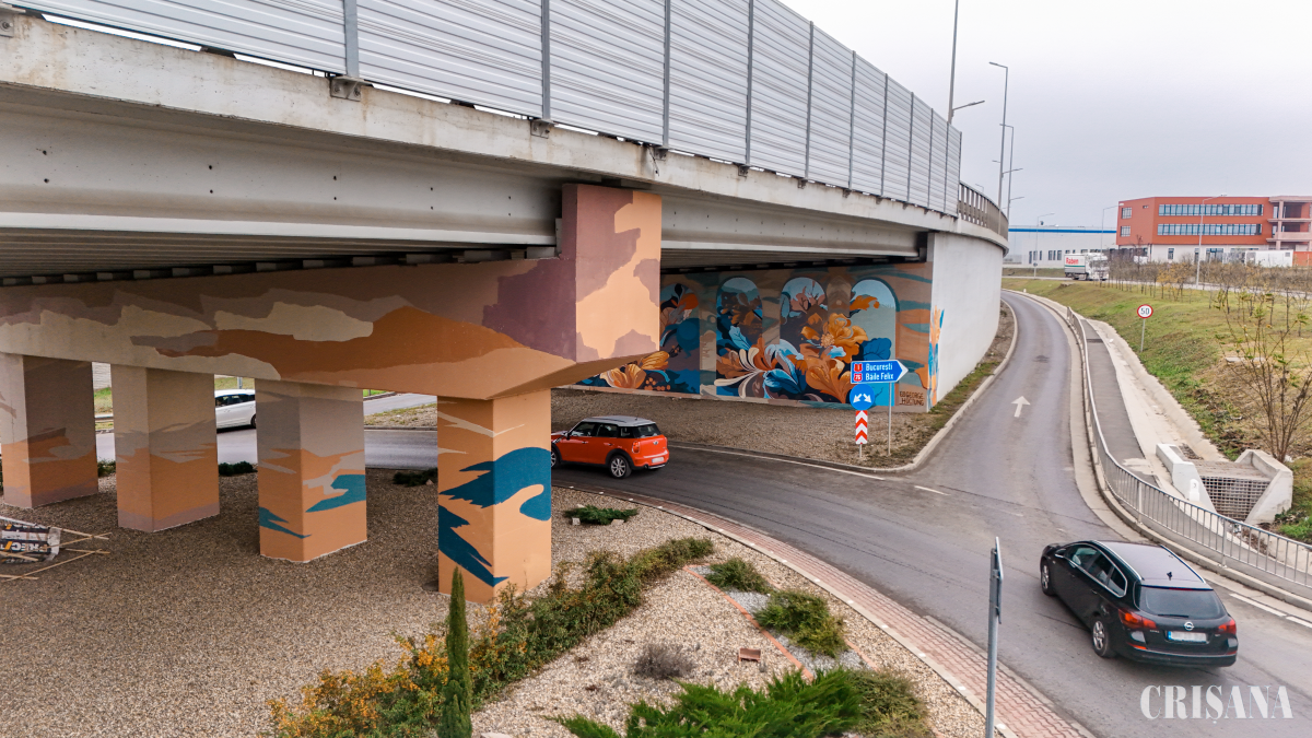Proiectul „Grădina din oraș”, o intervenție de artă publică amplă, care schimbă radical aspectul zonei situate sub podul rutier din apropierea Pieței 100, a fost finalizată. Lucrarea, realizată de artiștii orădeni George Hociung și Sabău Cristian, transformă un spațiu până de curând cenușiu într-un peisaj, plin de culoare și vitalitate.