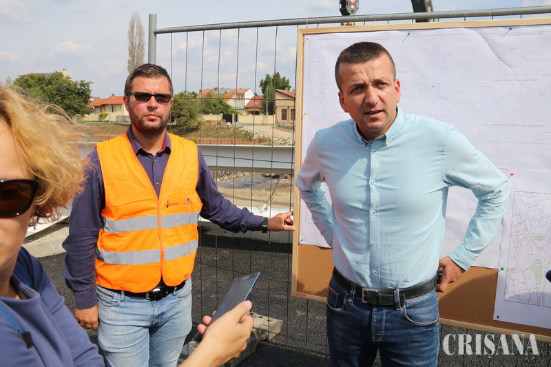 „Ieri (luni-n.r.) a ajuns la primul transport din podul care va fi montat începând de mâine (azi-n.r.), urmând ca în cursul săptămânilor următoare să vină și celelalte transporturi. Podul urmează să fie finalizat, montat ca schelat metalic până la data de 1 noiembrie - dată la care va fi finalizată complet partea de structură metalică, urmând apoi asfaltarea efectivă a podului, a trotuarelor”, a precizat viceprimarul Florin Birta, după discuţiile avute cu reprezentanţii firmei care realizează lucrările. În aceste zile, au fost finalizate accesele spre pod, atât pe un mal cât și pe celălalt, au fost realizate cele două sensuri giratorii și au fost asfaltate căile de rulare, urmând ca în momentul în care se va turna stratul de uzură final pe pod, să fie finalizate și arterele de circulație din zonă. Din partea constructorului, inginerul Vlad Moldovan a menționat că, până vineri, 14 septembrie, va fi montat integral tronsonul II al viitorului pod, săptămâna viitoare tronsonul III, care se află chiar peste deschiderea unde acum curge Crișul. După montarea tronsoanelor mediane, vor fi montate tronsoanele laterale, care vor face legătura cu malurile Crişului. „Ele vor finaliza montajul căii de rulare practic. Se vor face elemente de reglare și se verifică geometria podului înainte de montarea cablurilor și turnarea căii din luna noiembrie”, a precizat Vlad Moldovan.