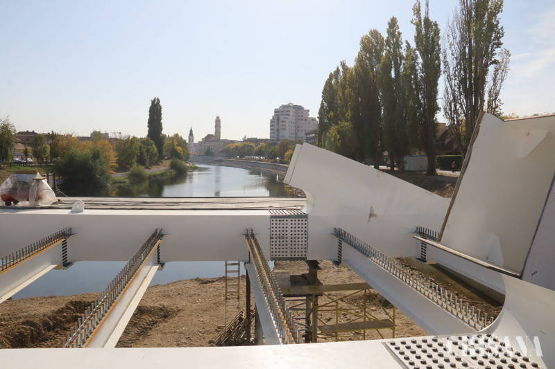 „A fost montat tablierul podului, care a fost adus pe bucăți. Peste tot au fost montate peste zece mii de șuruburi care susțin și care au prins acest pod”, a menţionat viceprimarul.