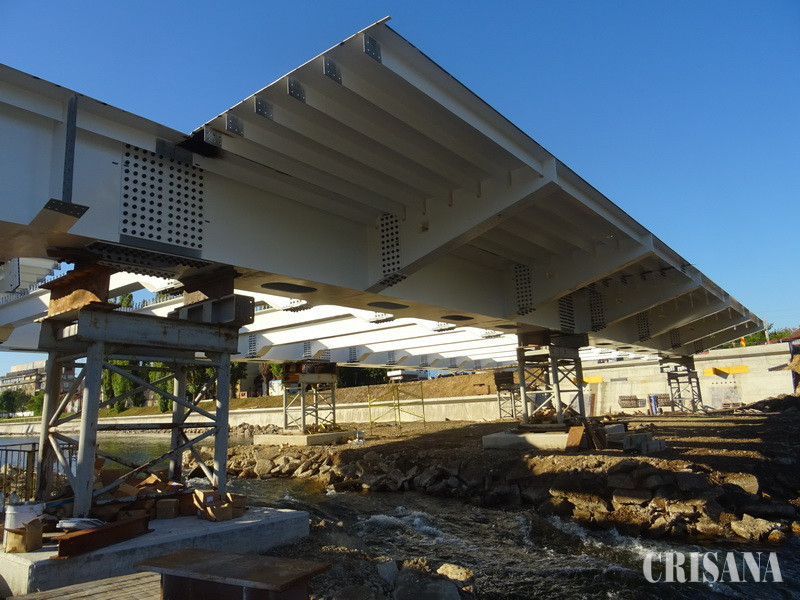 Astfel, în data de 11 septembrie au sosit primele tronsoane ale podului care se construiește între strada Plevnei și strada Szigligeti Ede. În perioada 11-26 septembrie au fost aprovizionate şase segmente complete din calea podului, inclusiv partea de consolă aferentă trotuarelor, la ora actuală fiind montate toate aceste segmente. În perioada 26 septembrie–6 octombrie urmează să fie finalizată montarea căii de rulare a podului, aceasta însemnând tronsoanele de capăt, respectiv intersecția dintre cale și nașterile arcului (zona de rezemare a arcului pe fundaţie).
