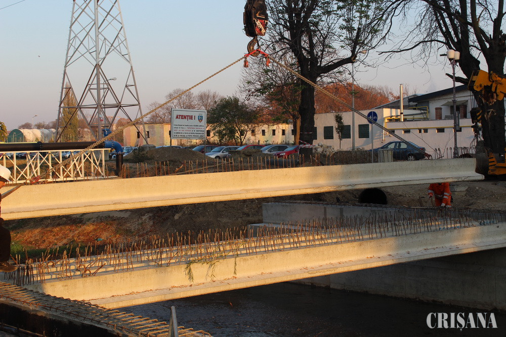 Podul peste Peța spre Universitate - Grinzile de beton au fost montate