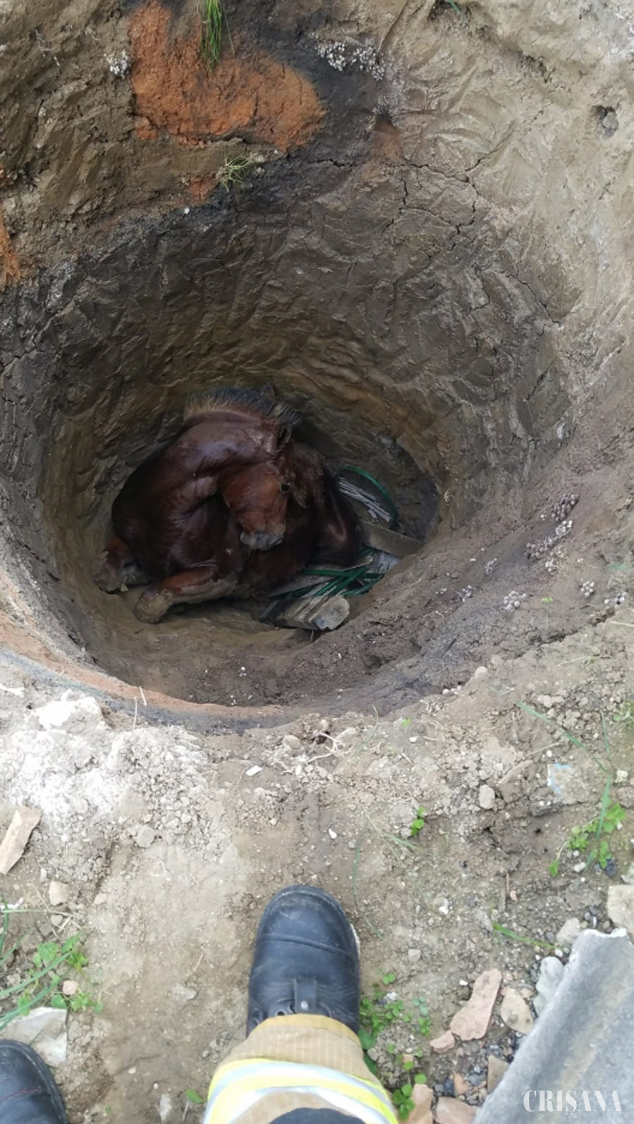 Pompierii au salvat o mânză căzută într-un puț adânc de circa patru metri