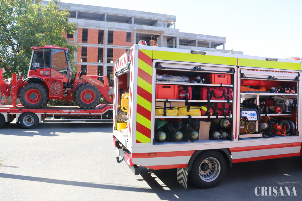Anul acesta, prin distribuire de la IGSU, inspectoratului i-au fost repartizate două autocamioane de intervenție, două autospeciale pentru descarcerare, un buldoexcavator și remorcă trailer pentru transportul acestuia și o autospecială de primă intervenție și comandă. De asemenea, de la Fundația pentru SMURD a fost primită o autoutilitară – Centru mobil de instruire paramedici, iar din fondurile asigurate de CJ Bihor a fost achiziționat un container tip rezervor pentru transport apă, prevăzut cu o motopompă transportabilă și tun apă. „Ne-am stabilit pentru anul acesta mai multe obiective, printre care şi dotarea şi menţinerea în stare de activitate a autospecialelor existente. Peste 65% dintre autospecialele de stins incendii au peste 30 de ani, dar am reuşit să le menţinem funcţionale. Anul acesta am reuşit să achiziţionăm un container tip rezervor pentru transport apă, prevăzut cu motopompă transportabilă şi tun, unic în ţară. Ne-am inspirat din ce am văzut în alte ţări, a fost fabricat în România după un proiect pe care noi l-am gândit. Pe viitor dorim să avem cinci astfel de echipamente, distribuite la unităţile din judeţ”, a declarat col. Sorin Caba, inspectorul şef al ISU “Crişana”. Containerul Abroll este destinat pentru a transporta o cantitate de şapte mii de litri de apă necesară pentru stingerea incendiilor. Containerul are în componenţă un rezervor de apă, o scară fixă de acces pe rezervor, respectiv în partea din spate o platformă pe care este amplasată o motopompă transportabilă împreună cu instalaţia aferentă pentru alimentarea acesteia din rezervorul de apă. Instalaţia care face legătura între rezervorul de apă şi motopompa transportabilă este astfel realizată încât să permită alimentarea rezervorului atât din surse naturale de apă, fără presiune, din surse sub presiune, precum şi utilizarea de către motopompă a apei stocate în rezervor, funcţie de necesităţile operaţionale.