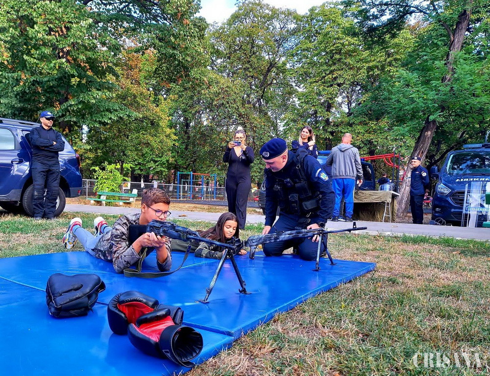 Jandarmii bihoreni și-au prezentat și ei autospecialele, armamentul și tehnica din dotare, impresionându-i pe micuți. Cel mai solicitat pentru fotografii a fost câinele lup Odin, antrenat pentru misiuni speciale. Copiii au învățat să se apere folosind mănuși și căști în cadrul unui atelier de box.