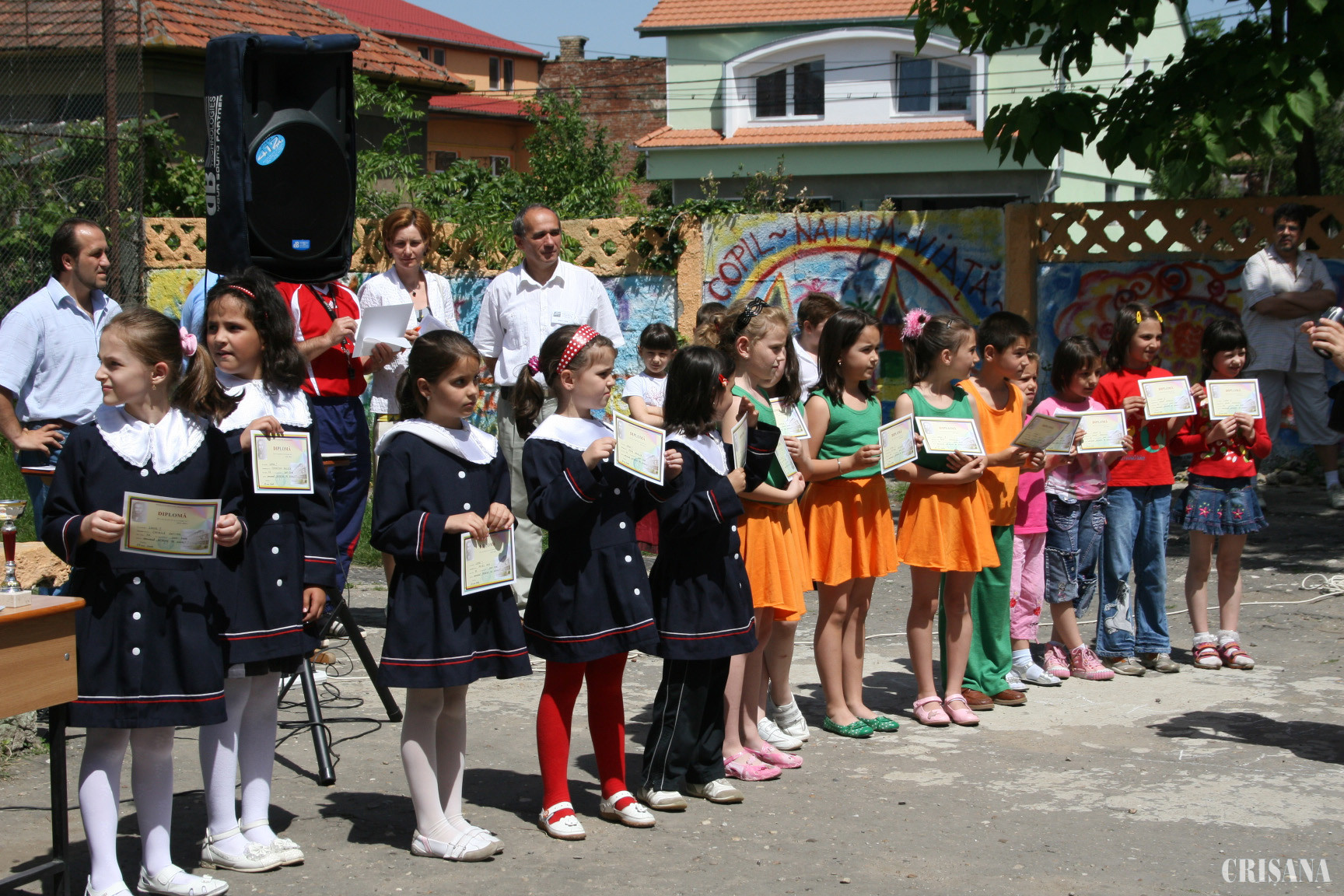 "Ne-am întâlnit în partea a doua a festivităţilor dedicate Zilelor Şcolii pentru a face un bilanţ al activităţilor culturale, educaţionale şi sportive în care s-au implicat toţi elevii, dar şi pentru a-i premia pe cei care s-au evidenţiat", a afirmat Ioan Mocan, directorul instituţiei de învăţământ. Primii care s-au adunat în curtea şcolii pentru a-şi primi diplomele au fost elevii claselor I-IV, pentru care au fost pregătite aproximativ 150 de diplome şi cupe, acordate pentru participarea la concursurile de desene pe asfalt, de ghicitori, "cel mai bun povestitor", la expoziţiile, atelierele de creaţie şi competiţiile sportive. Pentru ca cei mici să nu se plictisească, momentele de premiere s-au intercalat cu programele artistice pregătite de colegii lor. Elevii din clasele I-a A, a II-a A, a II-a C şi a III-a C au făcut demonstraţii de dans ritmic, cei din a III-a A, de gimnastică ritmică, iar elevii din clasele a I-a D şi a IV-a D au prezentat un program de cântece. Colegii lor mai mari, din clasele V-VIII, s-au remarcat la sesiunea de comunicări pentru elevi, la concursul de eseuri şi cel de istorie, la expoziţia organizată de Catedra de limbi străine: "Şcoala - sufletul comunităţii" şi la activităţile cu caracter sportiv. "În cadrul acestor activităţi elevii au avut posibilitatea să se plimbe imaginar prin Europa, să viziteze castele şi să cunoască personalităţi ale culturii internaţionale, dar şi să realizeze diverse experimente", a afirmat Alina Deliman, consilierul educaţional..