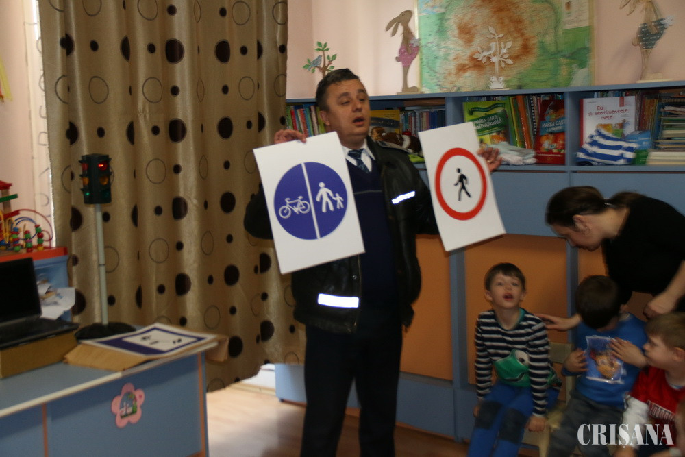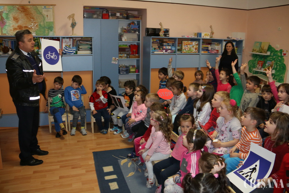 Poliţiştii orădeni au susţinut, ieri, o lecţie interactivă de educaţie rutieră la Grădiniţa nr. 49, structură a Grădiniţei cu program prelungit nr. 30 din Oradea.