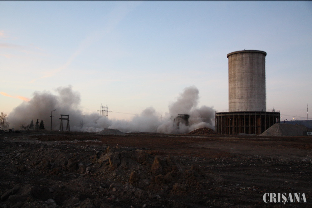 Fosta clădirea a centralei a fost şi ea demolată, mai rămânând în picioare două turnuri, unul dintre ele fiind demolat ieri, joi 18 decembrie, în intervalul orar 15.30-16.00, când poliţia rutieră a închis traficul pe centură. Bubuitura trotilului a clătinat structura de beton şi oţel, dar turnul a rămas în picioare, o parte din încărcătura introdusă în axul central nedetonând. Pirotehniştii au intrat cu băgare de seamă în turnul avariat şi au montat alt explozibil, în aproximativ 20 de minute repetând procedura. De această dată explozia controlată a pus la pământ turnul, urmând ca în perioada următoare muncitorii să cureţe locul de moloz. Celălalt turn va fi demolat anul viitor.