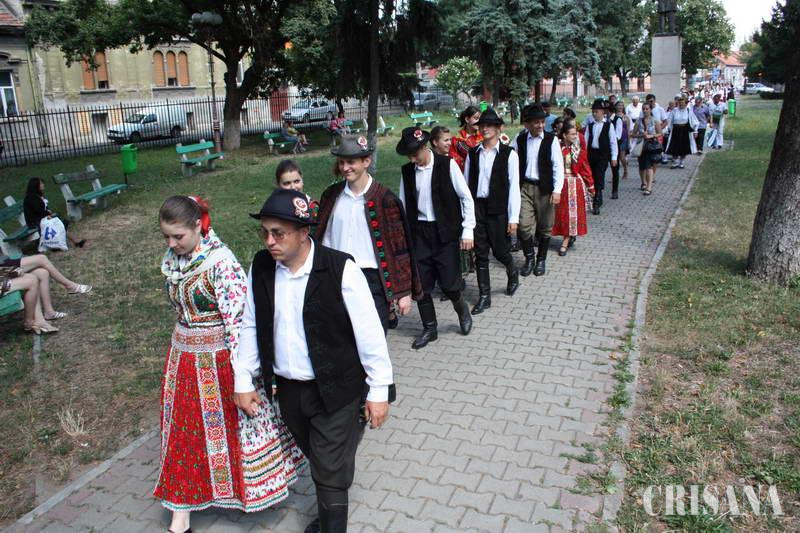 Timp de trei zile, atmosfera din Parcul Bălcescu a fost întreţinută de numeroase formaţii folclorice venite din tot judeţul. Ieri, în jurul orei 15.30, vizitatorii şi expozanţii au putut admira o paradă a portului, cântecului şi dansului popular, la care au participat: Ansamblul folcloric "Mugur şi mlădiţe de tezaur", al Casei de Cultură Beiuş (conducător artistic Anca Banda), Ansamblul folcloric "Nyilo Akac" din Valea lui Mihai (conducător artistic Borbely-Simon Csaba), Ansamblul folcloric "Dumbrava" din Bălnaca (conducător artistic Ioan Gavrilaş), Ansamblul folcloric "Ezustperje" din Şimian (conducător artistic Suto Szabolcs), Ansamblul folcloric din Şuncuiuş (conducători artistici Livia Ianc şi Cristian Seghedi) şi Ansmablul folcloric "Zestrea Buduresei" din Budureasa (conducători artistici, Sabina Magda şi Ioan Popa). Alaiul a fost condus de maestrul coregraf prof. Florea Crişu, cel care, împreună cu prof. Miron Blaga (consultant artistic), ambii de la Centrul Judeţean pentru Conservarea şi Promovarea Culturii Bihor, a coordonat şi realizat programele artistice. "Lumea a fost interesată de spectacolele oferite de formaţiile din Oradea şi din judeţ. Căldura ne-a cauzat ceva probleme, dar, în rest, totul a fost bine. Comparativ cu ceilalţi ani, au fost mult mai multe formaţii convocate şi care au răspuns prezent. De asemenea, faţă de anii trecuţi, acum au fost implicaţi şi meşterii şi constructorii de instrumente populare, ei făcând demonstraţii pe scenă, cum a fost şi cazul lui Dorel Codoban (n.r. - meşter de viori cu goarnă din satul Lazuri, comuna Roşia)", ne-a declarat maestrul coregraf Florea Crişu.