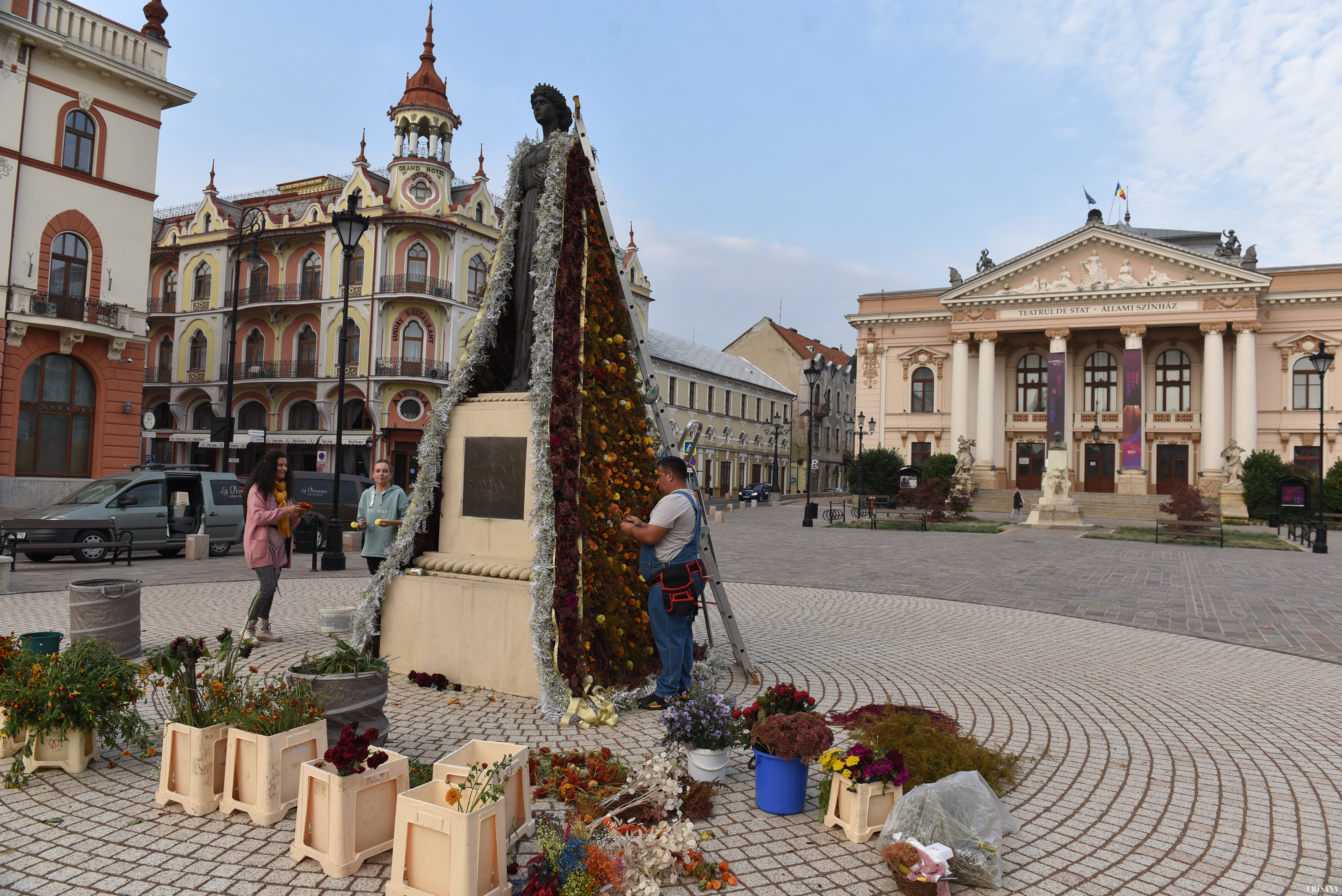 O mantie din flori realizată de artiștii locali îmbracă statuia Reginei Maria, inclusiv soclul, aceasta reproducând aproape identic mantia purtată de regină în ziua încoronării. Totodată, lângă statuia Regelui Ferdinand I, al cărei soclu este îmbrăcat cu drapele, este amplasată o casetă din sticlă ce va conține obiecte de epocă şi sunt amplasate şi două tunuri de epocă.