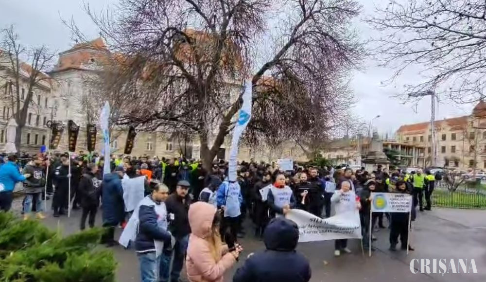 În jur de 250 de polițiști au protestat vineri, 10 ianuarie, în fața Prefecturii Bihor împotriva ordonanței trenuleț. Oamenii au spus că nu vor creșteri salariale ci doar ca veniturile pe care le au să nu le fie tăiate.
