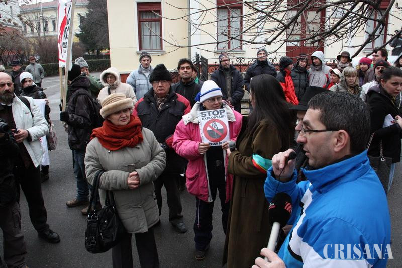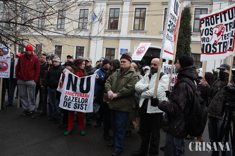 Înarmaţi cu bannere pe care scria „Nu corporaţia face legislaţia", „Profitul vostru, protestul nostru" şi „România spune NU exploatării prin fracturare a gazelor de şist" protestatarii, unii veniţi şi din judeţele vecine au cerut Guvernului stoparea exploatării gazelor de şist.