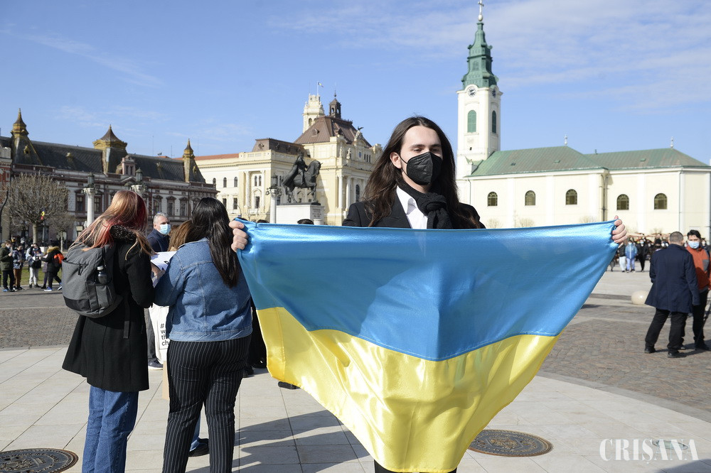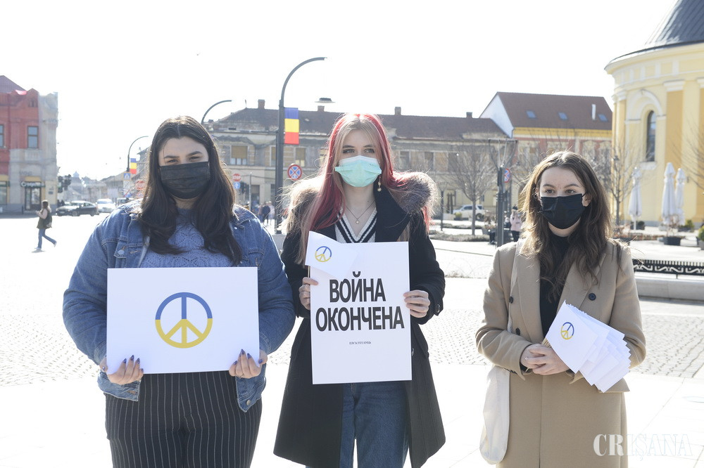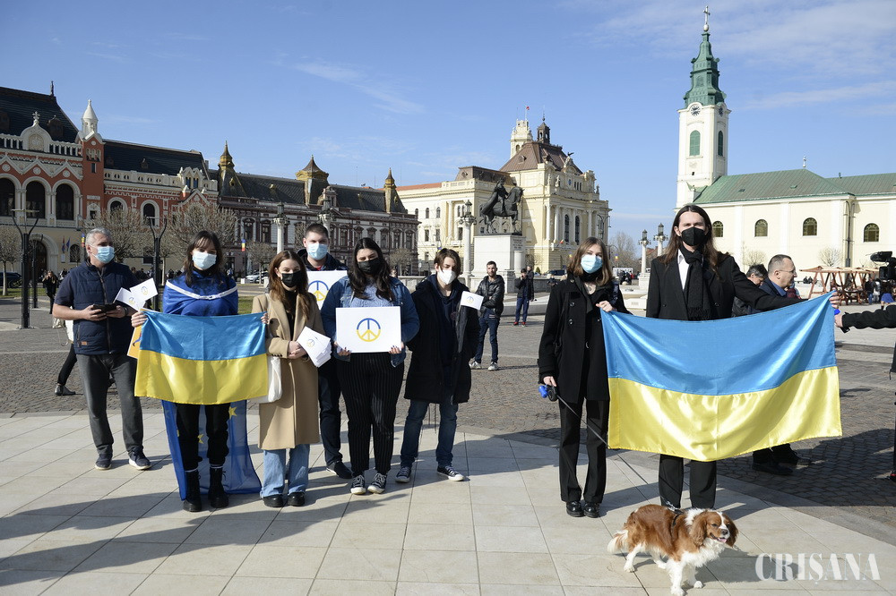 Joi şi vineri, mai mulţi tineri s-au strâns în Piaţa Unirii din Oradea, în semn de solidaritate cu Ucraina, dorind să îşi exprime în felul acesta susţinerea faţă de ţara vecină, atacată de Rusia. Participanţii au ţinut în mâini pancarte cu mesaje precum „Stop Putin”, „Stop War”, „Solidaritate cu Ucraina”, „Peace for Ukraine”, dar şi steaguri ale Ucrainei. Prezent la eveniment, profesorul şi ecologistul Orlando Balaş i-a îndemnat pe români să boicoteze companiile ruseşti. „Am venit şi astăzi să-mi arat solidaritatea cu Ucraina, cu Republica Moldova, cu toţi oamenii din Europa de Est care acum stau îngrijoraţi din cauza invaziei Federaţiei Ruse, a acestui stat condus de un dictator psihopat. Îndemn cetăţenii să conştientizeze că e vorba şi de noi şi să boicotăm dacă se poate produsele şi firmele ruseşti. Nu ştiu dacă vocea noastră se aude undeva, dar eu sper ca NATO să nu privească indiferentă şi să facă ce trebuie din punct de vedere militar ca să-l înlăture pe Putin”, a spus Balaş.