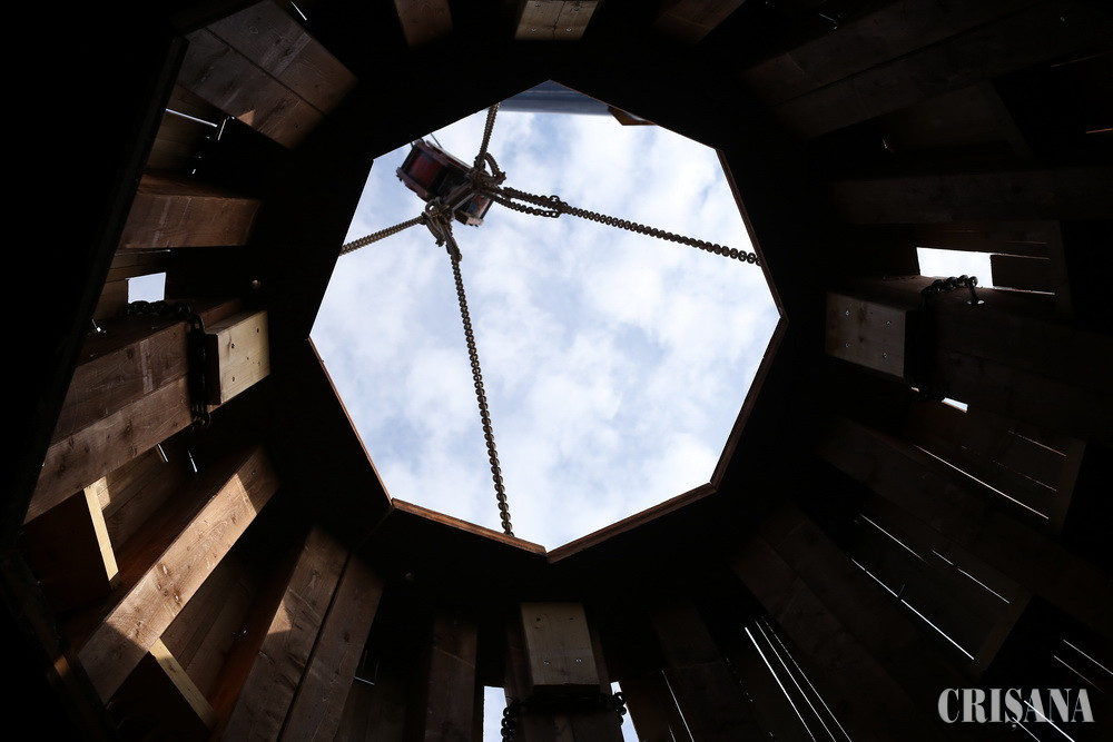 „Această parte superioară este tot o structură de lemn, care, după ce va fi adusă în șantier, va fi îmbrăcată cu ornamente din cupru, după care în cca 3-4 săptămâni va fi ridicată cu macaraua deasupra structurii de lemn fixate azi. Lucrările vor continua cu montarea deasupra structurii de lemn a unei folii de aerisire dintr-un material special care are în structura sa niște fibre din inserție metalică. Această folie are rolul de a menține o distanță între structura de lemn și solzii din tablă de cupru, tocmai pentru a asigura o aerisire corespunzătoare. După fixarea foliei de aerisire, solzii de cupru vor fi montați bucată cu bucată”, a declarat inginerul Alex Ienciu de la firma Trameco.