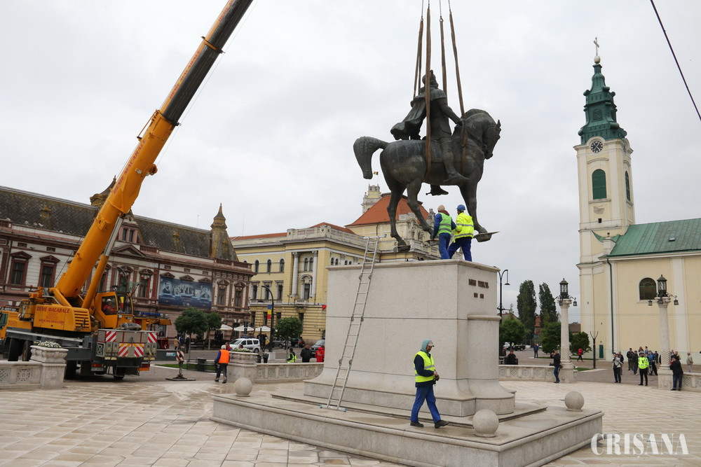 Statuia Regelui Ferdinand a sosit la Oradea pe o ploaie mocănească, în timp ce apărătorii statuii lui Mihai Viteazul s-au adunat, din nou, în Piaţa Unirii. A fost adusă şi o macara cu ajutorul căreia s-a derulat o operaţiune nemaivăzută în Oradea: demontarea unei statuii pentru a face loc alteia.