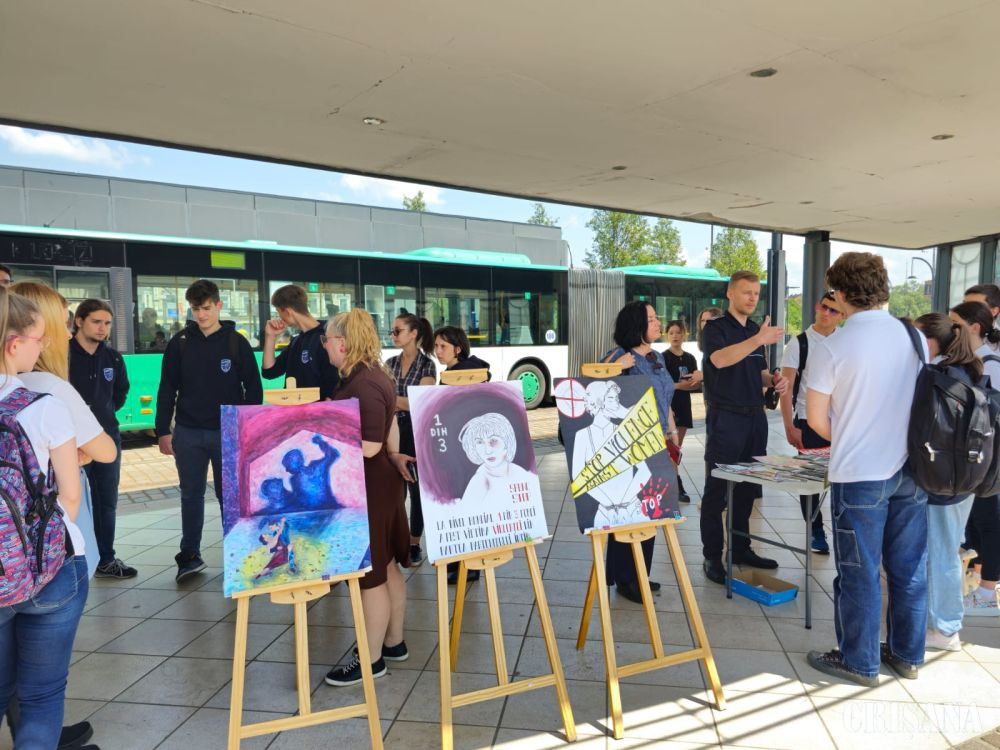 În eveniment au fost implicați și elevii Liceului de Artă Oradea, care au prezentat, într-o expoziție de desene, creațiile lor cu privire la violența în familie.