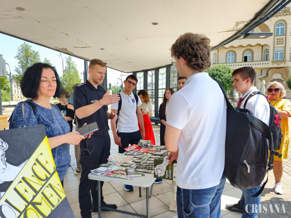 În intervalul orar 11.30 - 13.00, vineri, polițiștii Compartimentului de Analiză și Prevenire a Criminalității, împreună cu reprezentanții Fundaţiei Lampas au fost prezenți în campusul Universității Oradea, unde au organizat evenimentul „Cafeneaua prevenirii”. Polițiștii au interacționat cu studenții pe tema prevenirii violenței domestice, într-un cadru informal.